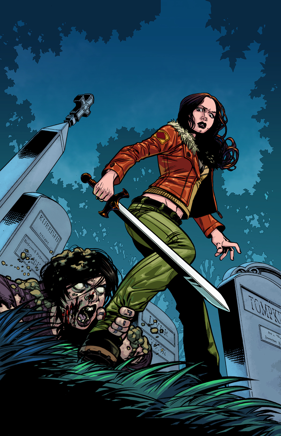 Angel, Faith, and the remaining Slayers prep themselves to overtake a group of living zombies-without losing any more lives. The demon Eyghon holds the last remnants of Giles's soul, but a gaggle of innocent zombies are blocking Angel's path to victory. Good thing an old friend was recruited to help with the fight . . .