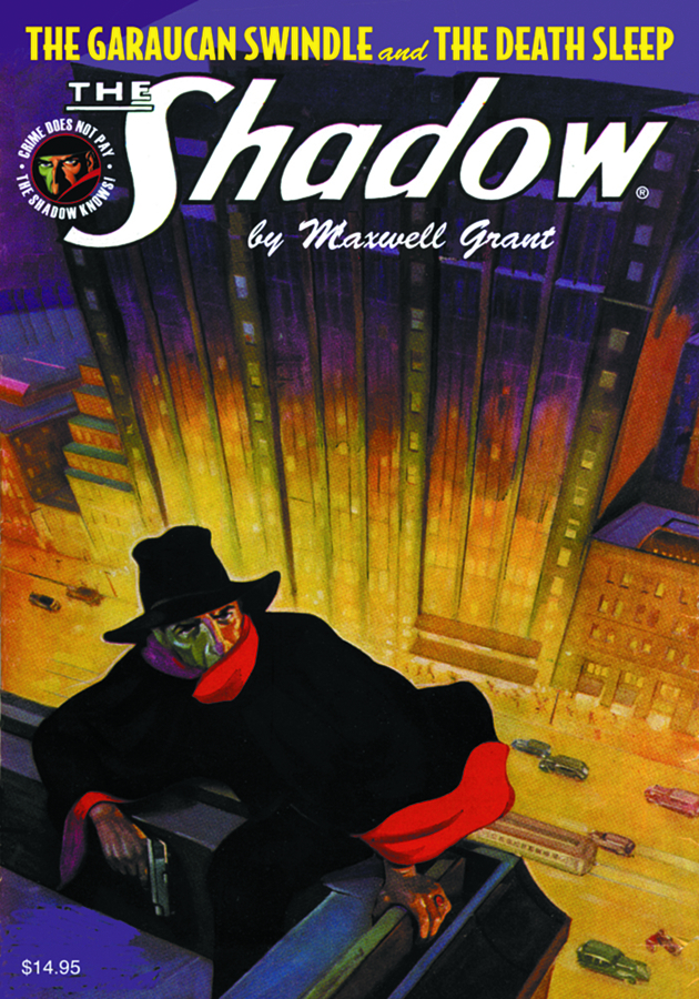 The Master of Darkness battles global crime conspiracies in two classic pulp novels! Following the departure of Commissioner Weston, The Shadow attempts to prevent a Wall Street crisis brought on by "The Garaucan Swindle," in the pulp classic that introduced Police Commissioner Wainwright Barth. Then, The Shadow must find a way to stop the secret gas that causes "The Death Sleep" to prevent a criminal plot to crack the United States Mint and the Bank of London.