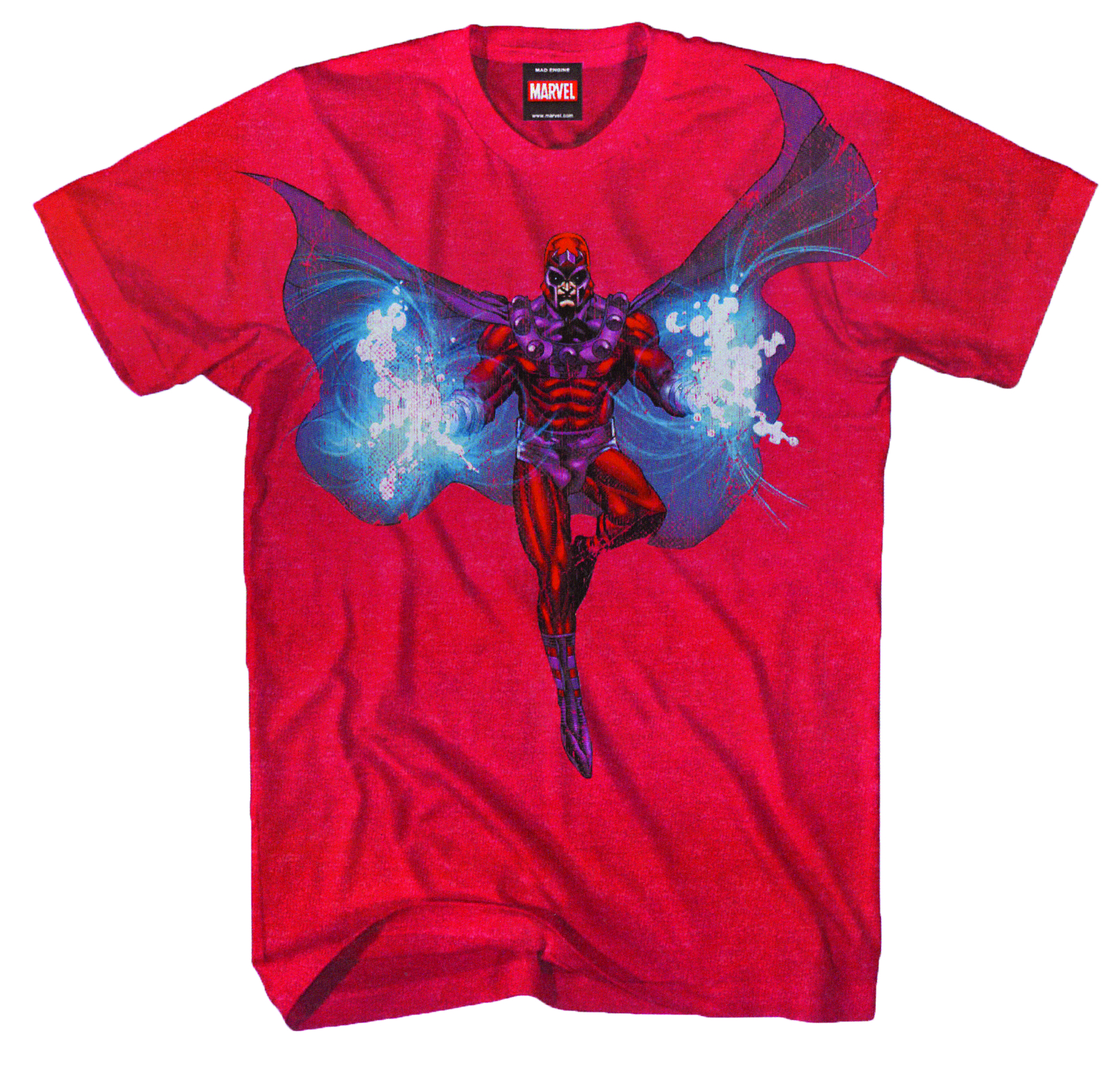 The mutant master of magnetism wields his unholy powers on this red t-shirt!