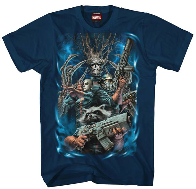 The Guardians of the Galaxy are ready to strike on this navy blue t-shirt!