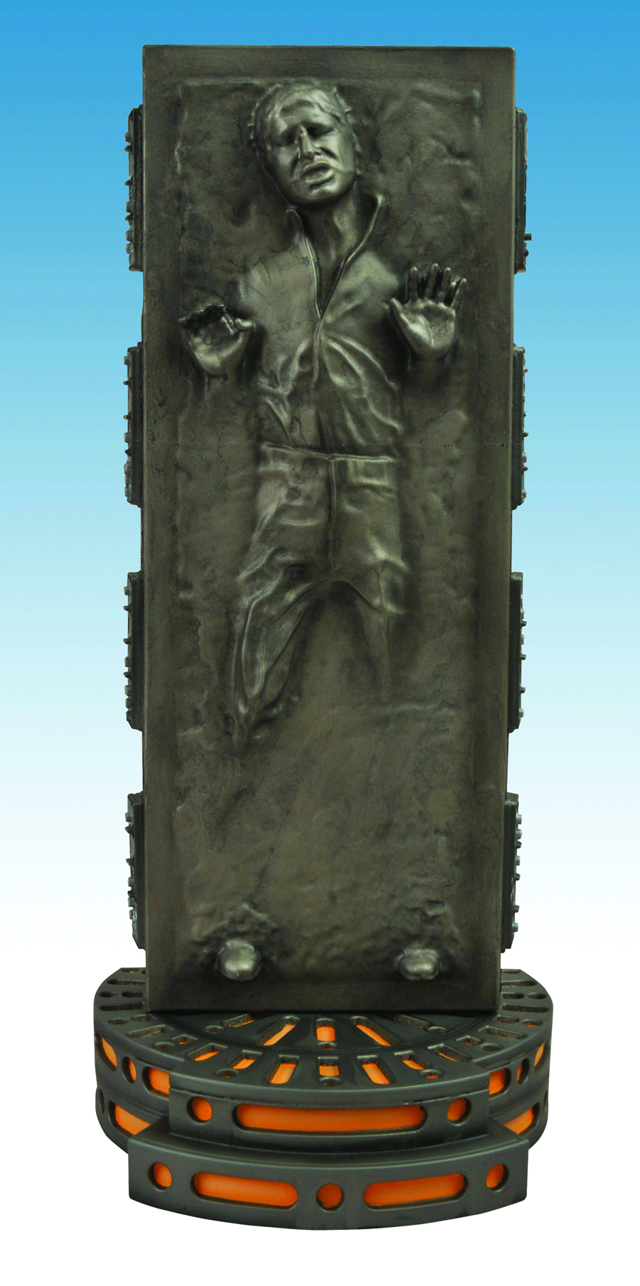 A Diamond Select Release! No wonder Han Solo was worth so much to Boba Fett - he was full of Boba's loose change! Standing over 12 inches tall, this vinyl re-creation of Han Solo frozen in carbonite from the end of The Empire Strikes Back features a coin slot and a freezing-chamber-inspired base. Save up your bounties for a rainy day in one of our biggest Star Wars banks yet!