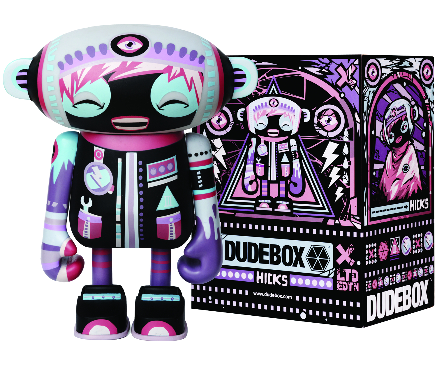 Neesh is a little Fixer-bot, who mends anything in its path - even the odd broken heart. Hicks produces brilliant art across all sorts of mediums including large scale murals, fine art paintings and prints and clothing.