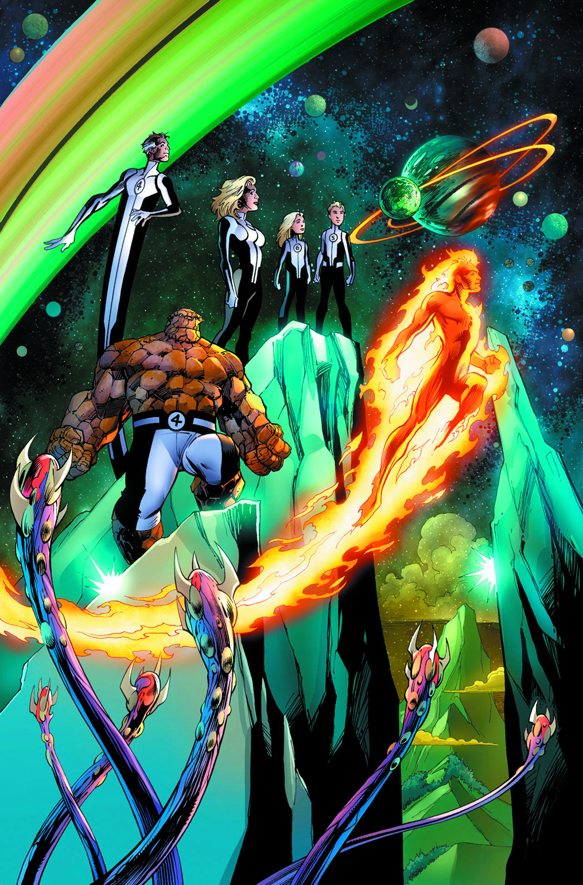 From Marvel Comics. A new year on a new world! The Richards family rings in 365 days of adventure on a brand new planet! Someone's having second thoughts. Really? Already? How long can Reed keep his secret? How long can anything be kept a secret when you're travelling through time & space with your family...? Scheduled in stores 02/20/13. (161)