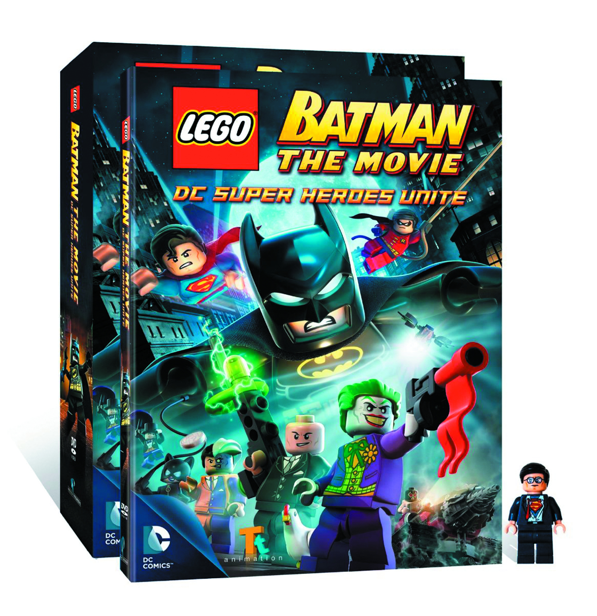 From Warner Home Video. When Bruce Wayne receives the man of the year award, fellow billionaire Lex Luthor becomes jealous and decides to run for President. To create the atmosphere for his type of fear-based politics Lex recruits the Joker to perfect a Black LEGO Destructor Ray which wreaks havoc on Gotham. As Lex destroys Batman's tech, Batman reluctantly turns to Superman for help. Each set also contains an exclusive Clark Kent/Superman LEGO mini-figure! Scheduled in stores 05/22/13. (8281)