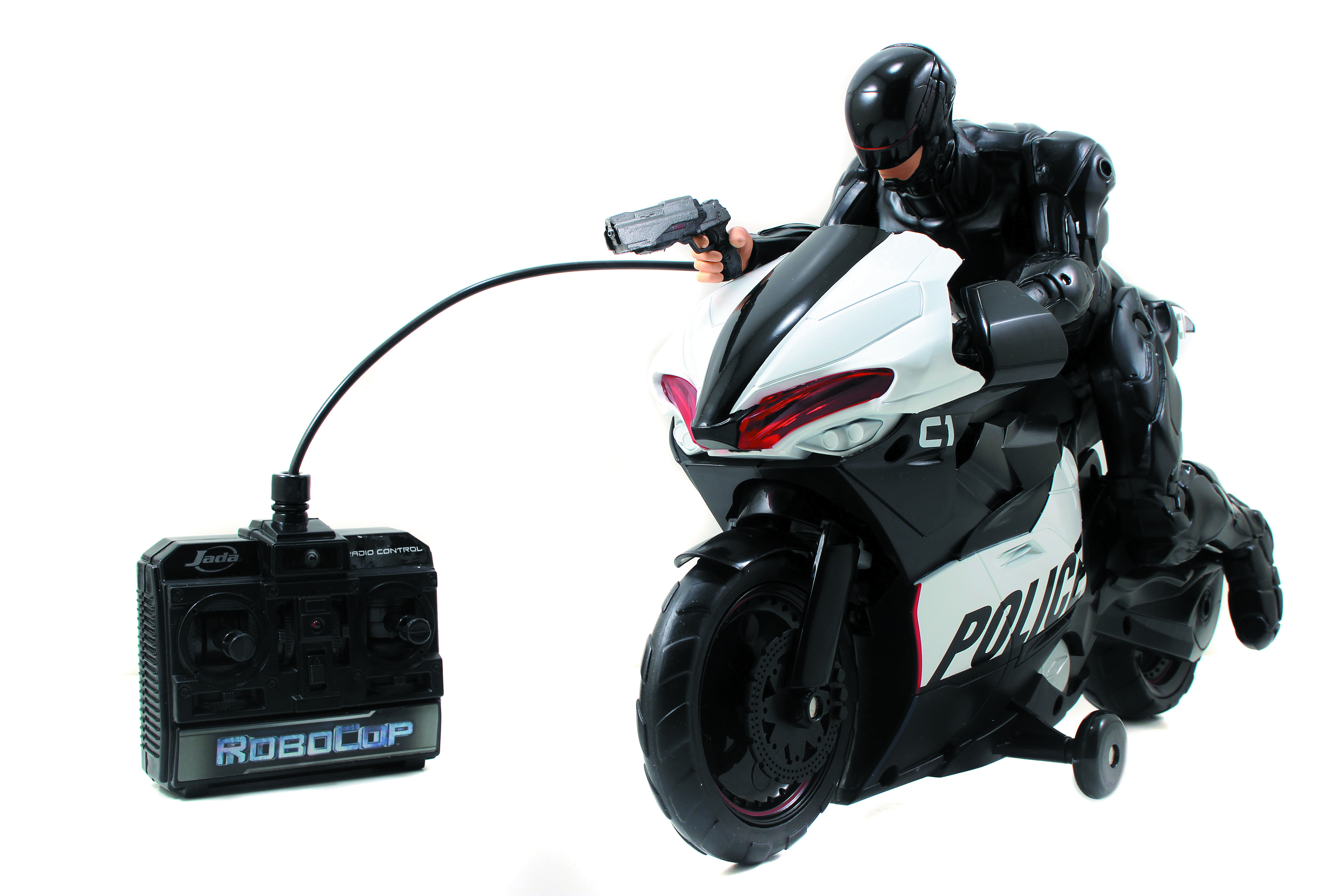 Robcop's Police Cruiser motorcyle features full function R/C action, and includes a poseable 12" Robocop 3.0 figure. Window box packaging.