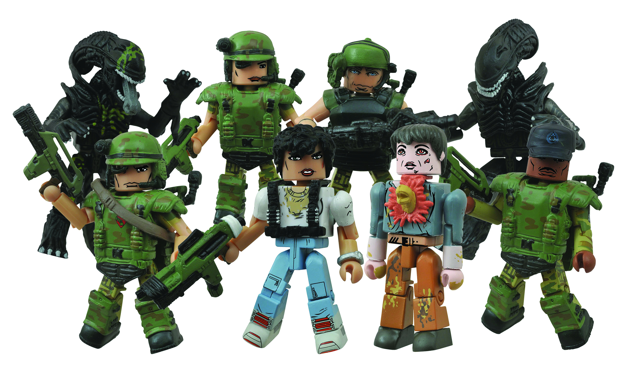 A Diamond Select Toys release! Colonial Marines, move out! The first assortment of Minimates two-packs based on the classic 1986 sci-fi movie Aliens is getting ready to drop, and it's simply bursting with all-new Marines and xenomorphs! The four 2-packs include Wounded Cpl. Hicks with Ripley, Pvt. Drake with Battle-Damaged Attacking Alien, Sgt. Apone with Alien, and Cpl. Dietrich with Infected Colonist. Each 2-inch Minimates mini-figure features 14 points of articulation and interchangeable parts. Packaged on a blister card.