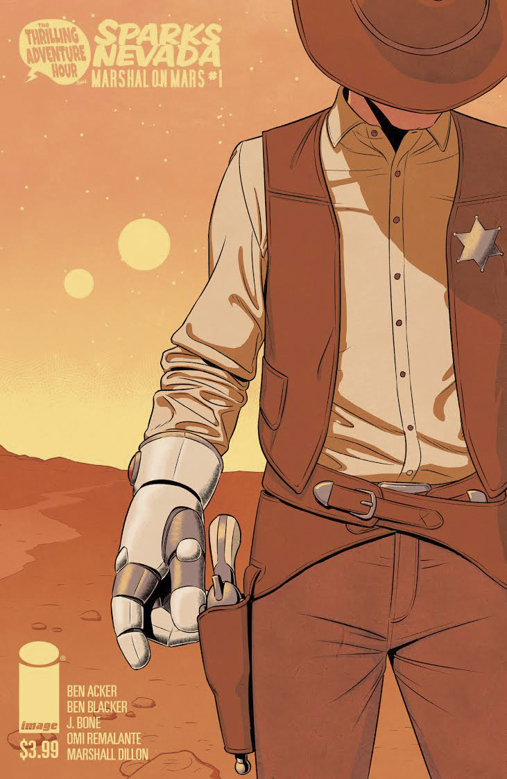 Shine your astro spurs and don your robot fists! Justice rides a rocket steed across the crimson plains of the fourth planet, where one man brings fear to robots and aliens...and hope to humans who make this frontier planet their home. He is...SPARKS NEVADA: MARSHAL ON MARS!
