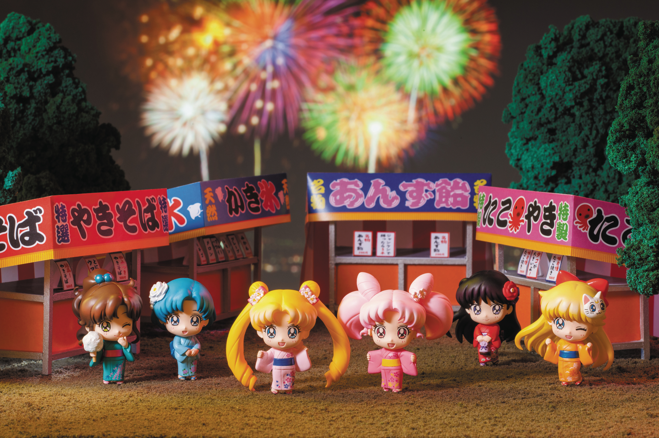 From MegaHouse. Dressed in yukatas and standing just over 2" tall, Usagi, Chibiusa, Ami, Rei, Makoto and Minako get ready for an exciting festival evening. Collect them all.