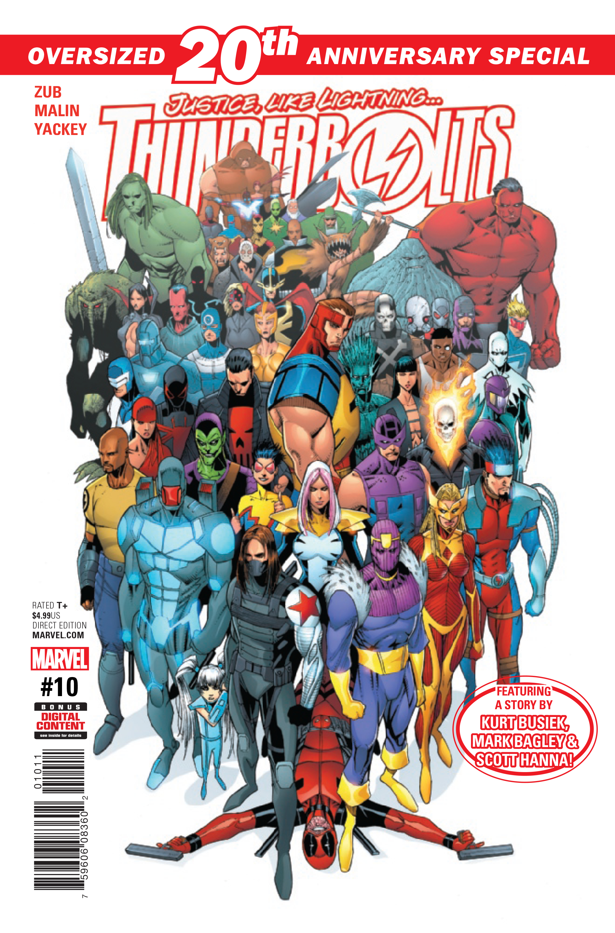 • "Return of the Masters," the Thunderbolts 20th anniversary event, begins here! Along with our pulse-pounding lead story, this special oversized issue includes a brand-new Thunderbolts tale by series co-creators Kurt Busiek and Mark Bagley!