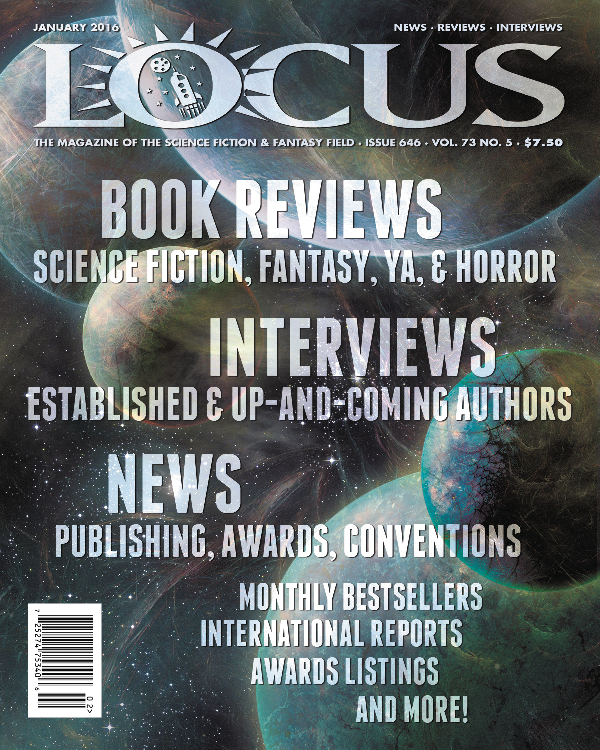 Locus presents the Year-in-Review, our annual authoritative look at the best books of the past year including essays and recommendations from our reviewers; our recommended reading list; and our book and magazine summaries, which take an in-depth look at how those two publishing fields performed during the past year. Also, look for commentary from Kameron Hurley; interviews from established and new authors; reviews of new books; genre news, people notes, and other special features.