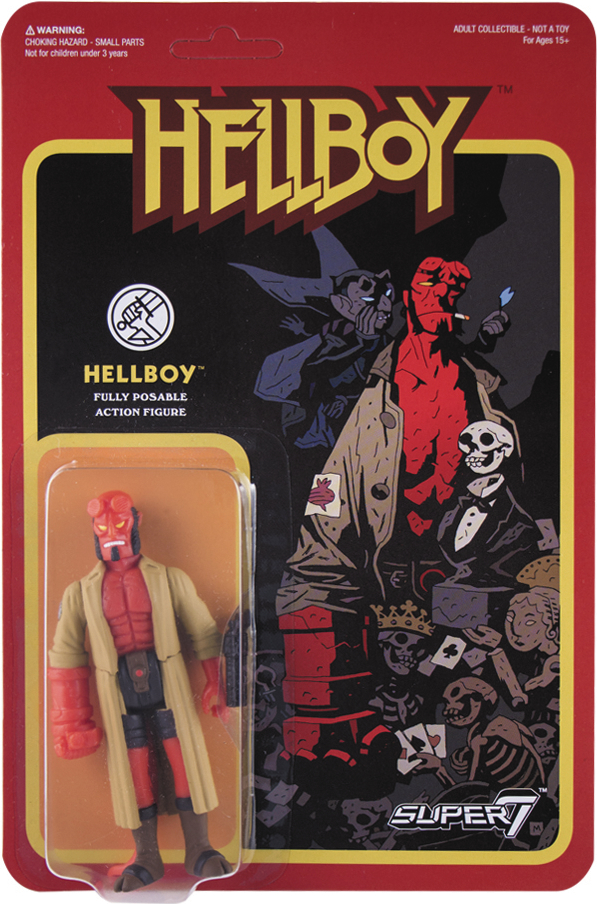 Hellboy Retro Action Figures. Each is individually packaged on a retro 6-inch x 9-inch card, just like you remember from the pages of Mike Mignola's fantastic comic book series. Each plastic action figure comes with 5 points of articulation and deco based on the classic artwork from Dark Horse Comics' pages. Collect