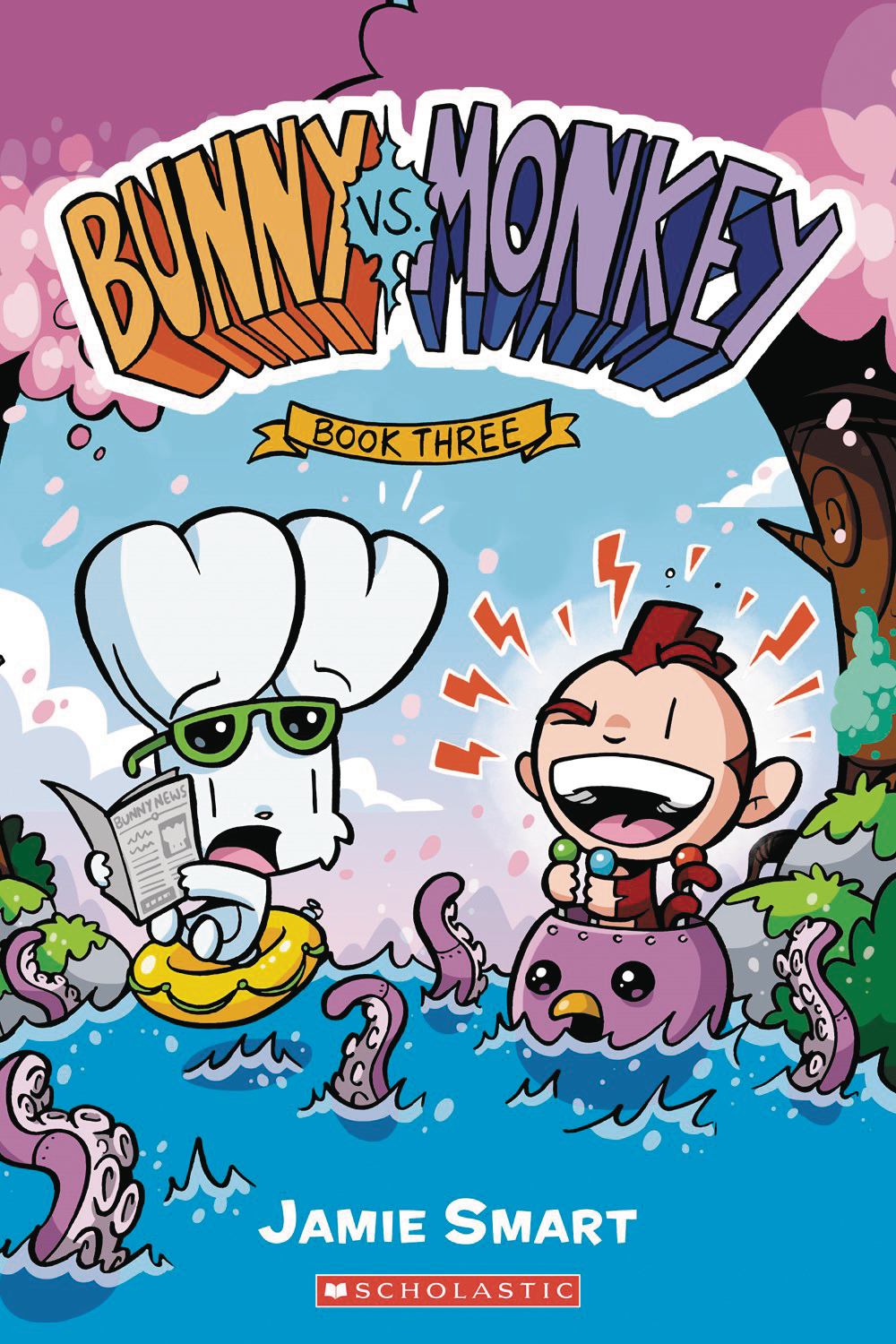 Return to the forest with Bunny, Monkey, and the rest of the crazy crew in Book Three of the series called "graphic novel gold" by SLJ and "milk-snortingly funny" by Shelf Awareness!