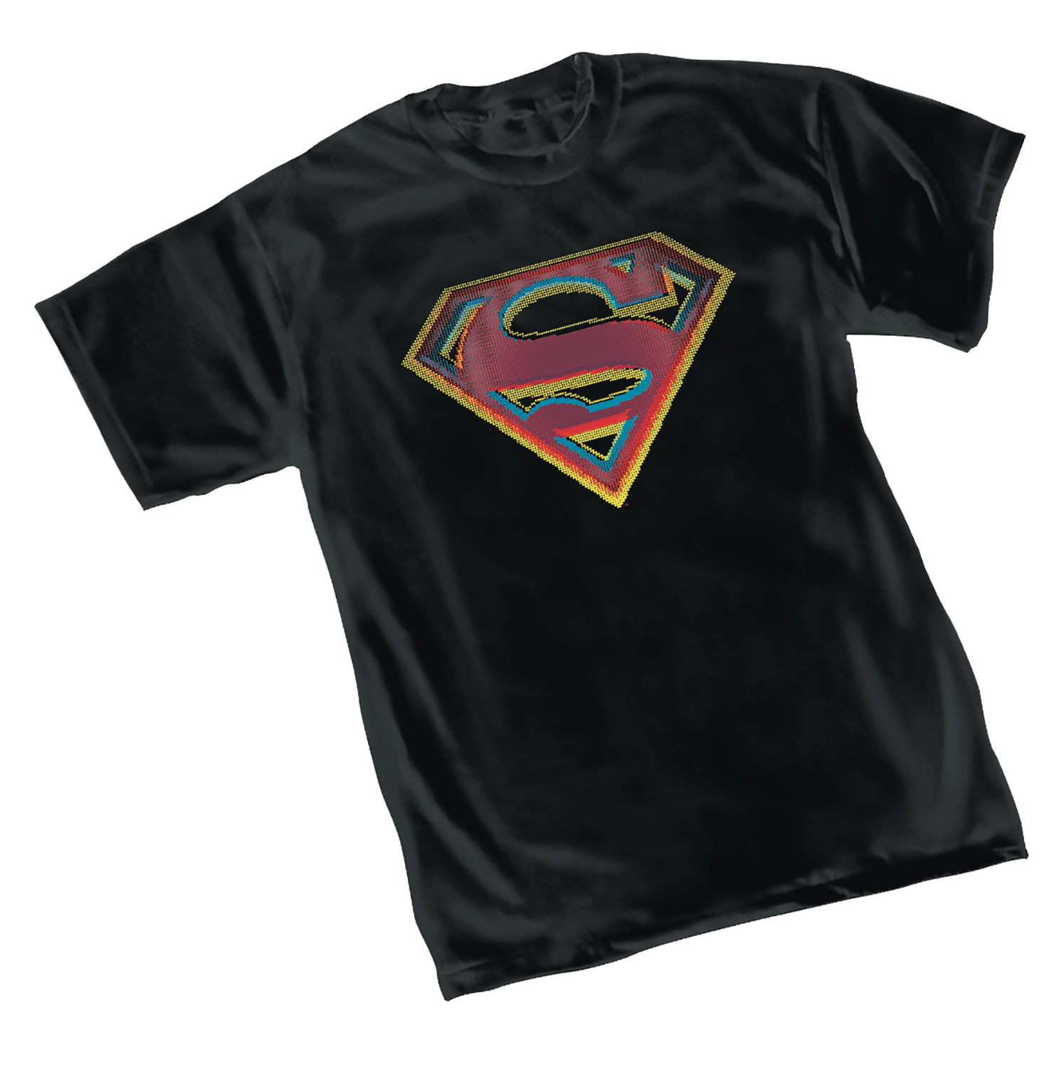 The classic Superman "S" is re-interpreted on the new Superman: Stress Symbol T-Shirt. Features a full-color imprint on a black 100% cotton tee. NOW AVAILABLE for sale in Canada and U.K.