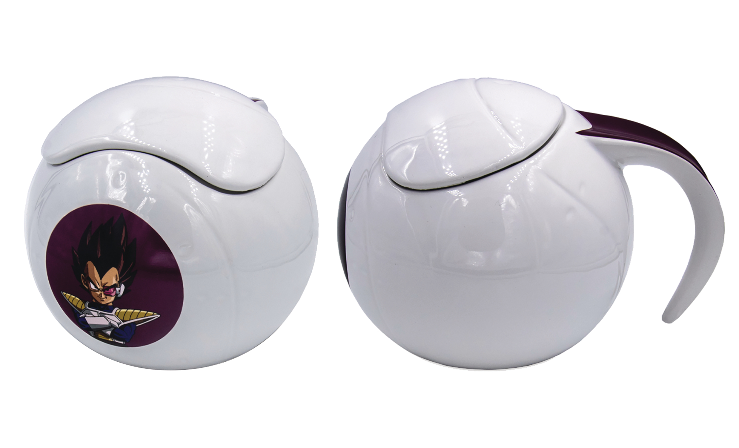 Dragon Ball Z will instantly recognize Vegeta's iconic space pod. We've brought his pod to life with our 3D mug, which is made of high-quality ceramic and features a heat-activated window. Pour a hot beverage into the mug and watch Vegeta's image appear! This replica mug has a sturdy handle and also includes a removable lid. Perfect for gifting, this mug is sure to impress any