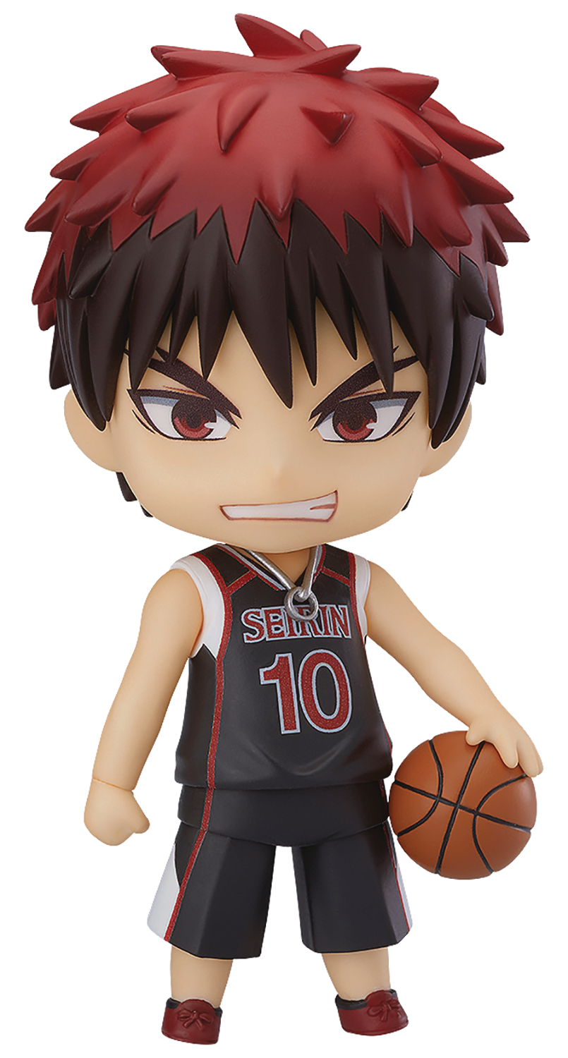 Taiga Kagami, has been transformed into a Nendoroid! He comes with three face plates including his standard expression, a serious expression when he's on the court and an eating expression. For optional parts, he comes with a basketball, a cheeseburger and his necklace with ring attached. Have fun recreating scenes of him on and off the court!