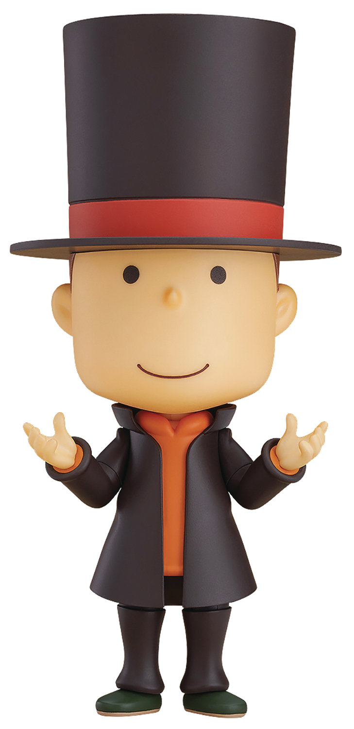 Professor Layton! He comes with three face plates including a standard expression, a smiling expression and a closed-eyes expression. He also comes with his tea set and his trunk.