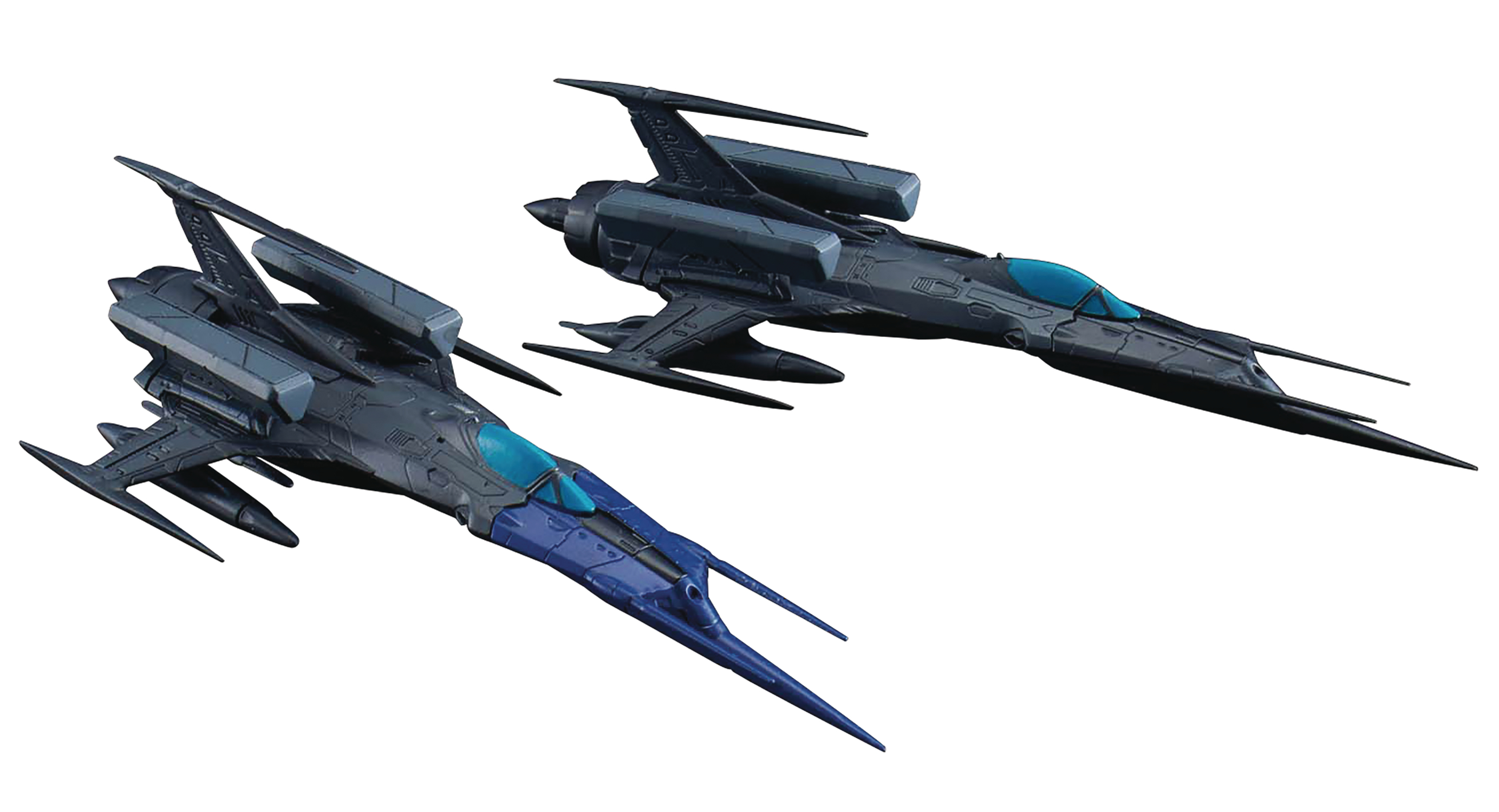 From Bandai Hobby. A twin pack of the Black Bird from Yamato 2202! Includes optional nose section to recreate Kato's personal unit as well as display stand. Includes Runner x9, Instruction Manual on box.