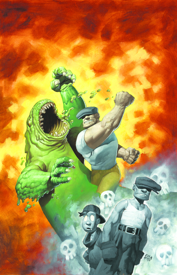 The Goon and Franky have been best friends ever since they was tykes. Find out how the two little ankle-biters became best pals, and how they muscled their way into the rackets of big-time crime-boss, Labrazio-who, incidentally, nobody's seen in a while. This trip down memory lane ain't gonna be no joyride, neither. Franky and the Goon are going to have to take on a horde of zombies, an army of hoboes, a couple of grave robbin' mongoloids, a guy with a gold head and his killer robot, a pie-crazed skunk ape, one homely, man-crazy sea hag, and whole lot of other things that smell just as bad if not worse. Pick up a copy, because those uptown rich people may have the cops and their G-men, but down here all we got is the Goon! Collecting issues #1-4 of the Dark Horse series, plus the 8-page story from
