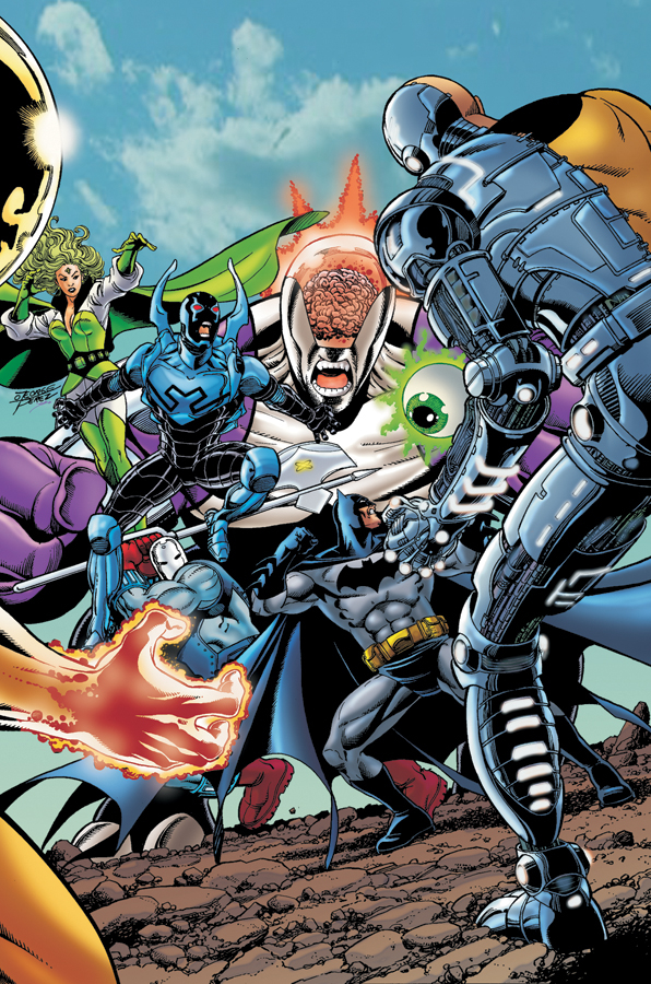 It's Batman and Blue Beetle versus the Fatal Five in the team-up book to end all team-up books! Who's brought these Legion villains into the fray? The Lord of Time, who has pulled in assassins and villains from throughout the history of the DCU!