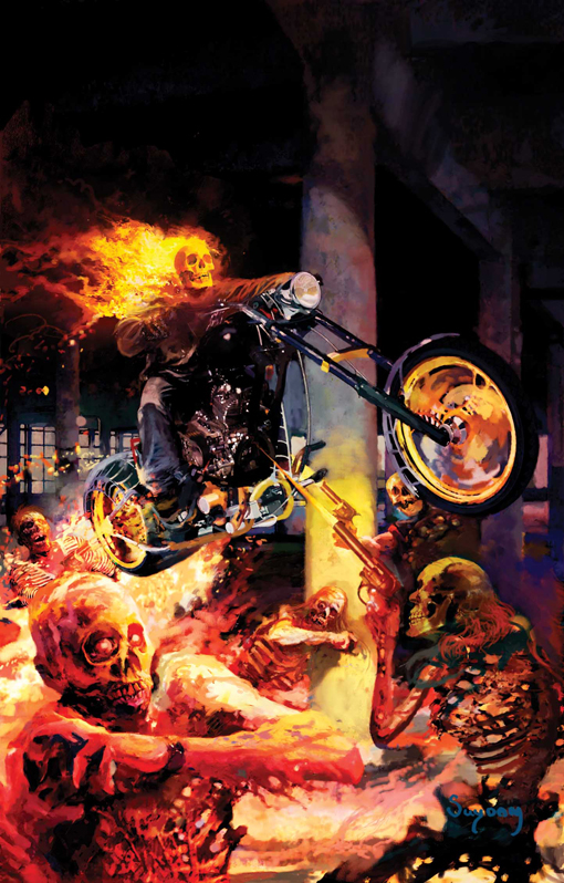 A dead super villain possessed by the Prince of Lies. A survivalist cop with an arsenal of weaponry. And now, an army of flesh-eating zombies poised to destroy everything in their path. There are times that being the Spirit of Vengeance is a real pain in the bike seat. But it turns out that Ghost Rider has one advantage that no one else can claim in the town of Sleepy Hollow, IL: he doesn't have any flesh to get chewed off.