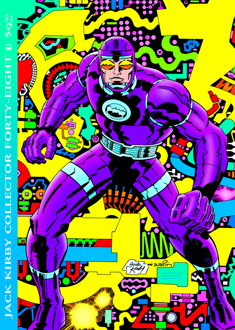 This issue spotlights "Kirbytech" - Jack's knack for creating high-tech gizmos, gadgets, and concepts, from Iron Man's armor and Machine Man, to the Negative Zone and beyond! Included is a rare Kirby interview, Mark Evanier's regular column, two pencil art galleries, a complete 1950s story, interviews with
