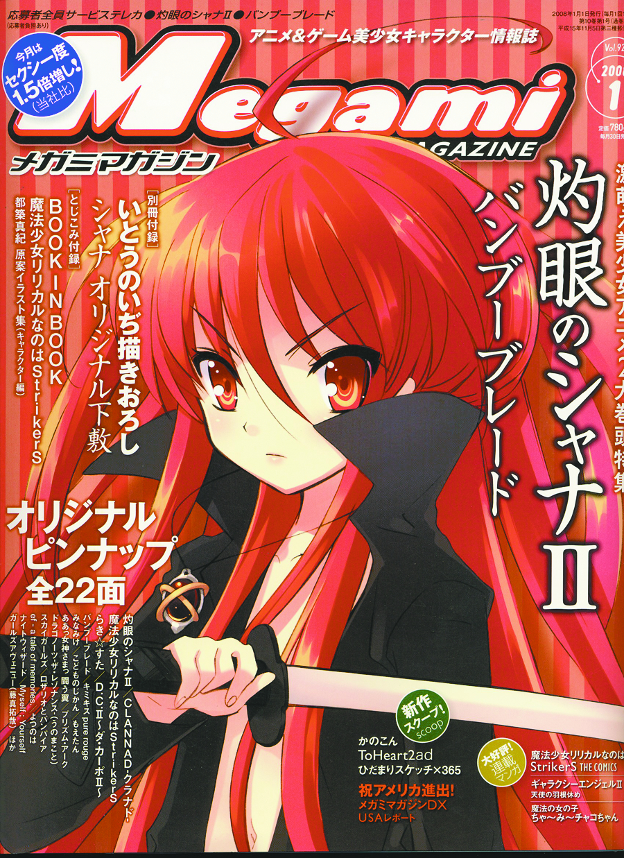 Megami is the best Japanese anime magazine for tons of free giveaways, as well as full-color artwork and posters! Includes telephone cards, punch-out "character stands," stickers, and much more! Japanese text.
