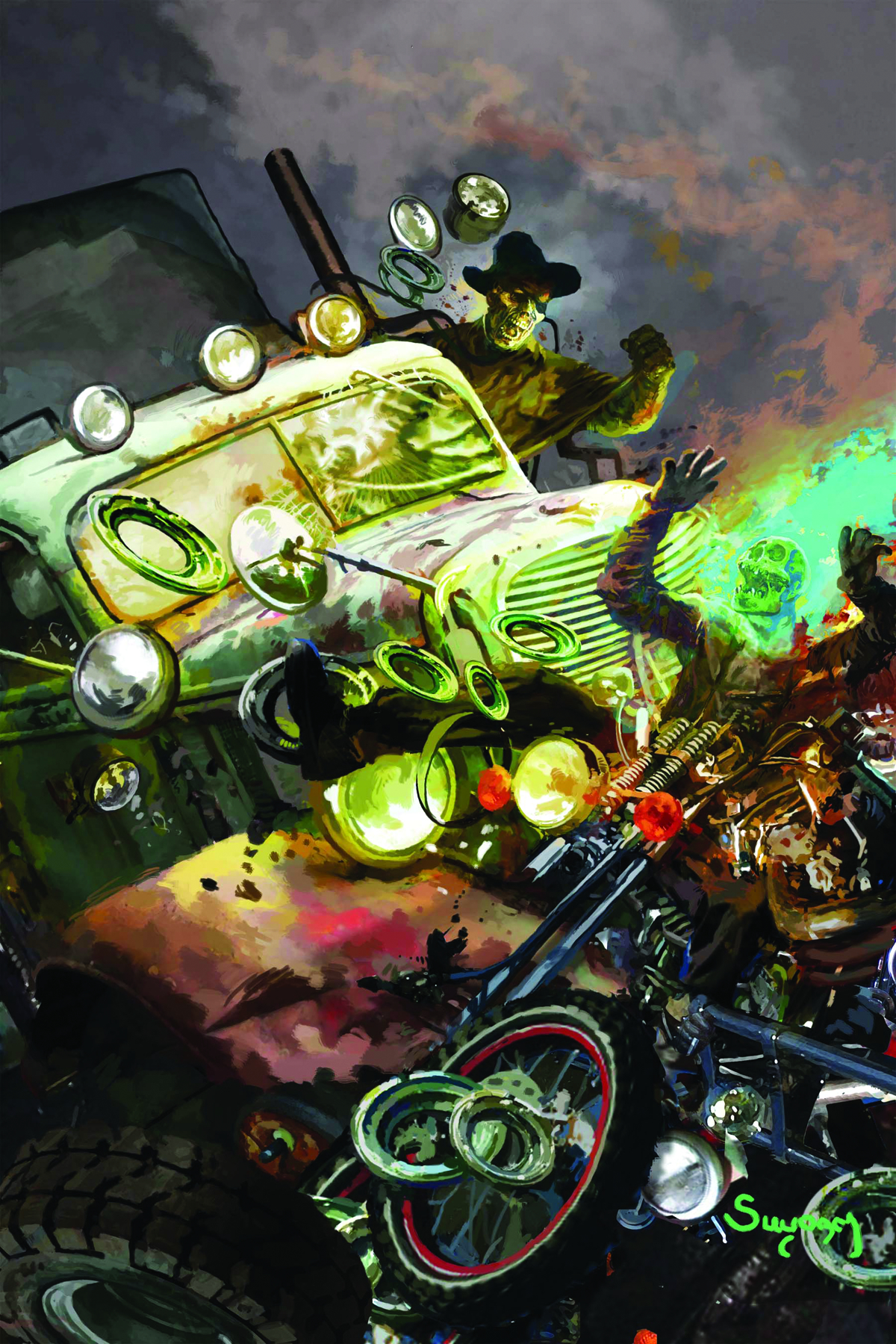 "TRIALS AND TRIBULATIONS," PART 2-Among the truckers who work the loneliest stretches of highways at night, there is a legend. The legend of the Highwayman, the hellbilly terror of the hammer lane, a former trucker who was cursed by the devil and now drives a mystical black rig, preying on the souls of anyone foolish enough to drive his highways come nightfall. This issue, that happens to be Danny Ketch, a man who knows a thing or two when it comes to curses.