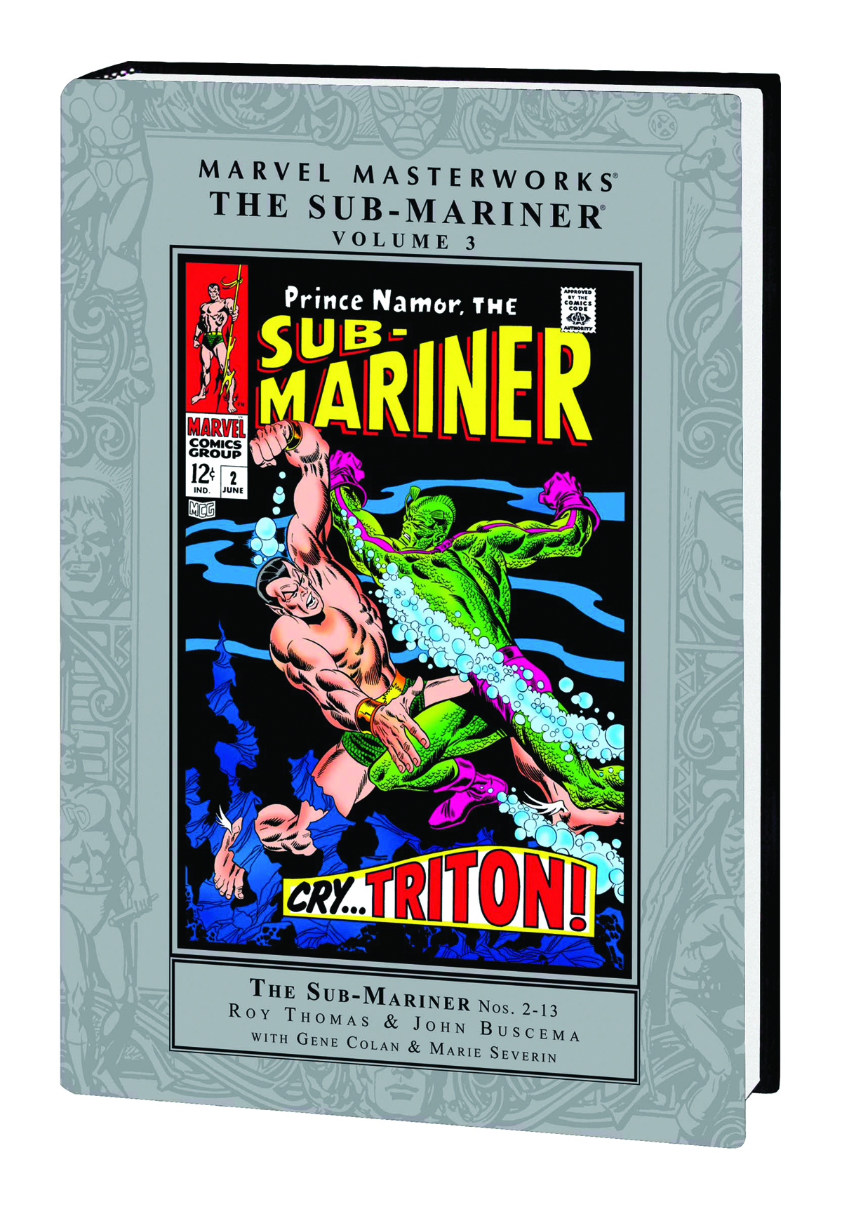 Imperious Rex! Prince Namor, the Sub-Mariner has returned for another MARVEL MASTERWORKS adventure! Writer Roy Thomas and a trio of definitive Sub-Mariner artists are going to take comic's first anti-hero on one of his greatest adventures of all time! It's Atlantean vs. Inhuman when Namor faces off against Triton. Then, our hero must march through Attuma and the bloodthirsty Tiger Shark, in his first appearance, but the truly epic confrontation begins when the man called Destiny returns and his Helmet of the Ancients is revealed to be the powerful Serpent Crown. It's evil influence threatens the lives of Namor and his love, the Lady Dorma, and sends them across the seas to Lemuria to destroy the Crown or be destroyed by it! We couldn't forget the all-time classic, earth-rattling face-off between Namor and the Thing, not to mention the touching return of one of the Atlantean prince's friends from all way back in comics' Golden Age. It's Marvel's mer-man at his very best! Collecting SUB-MARINER #2-13.