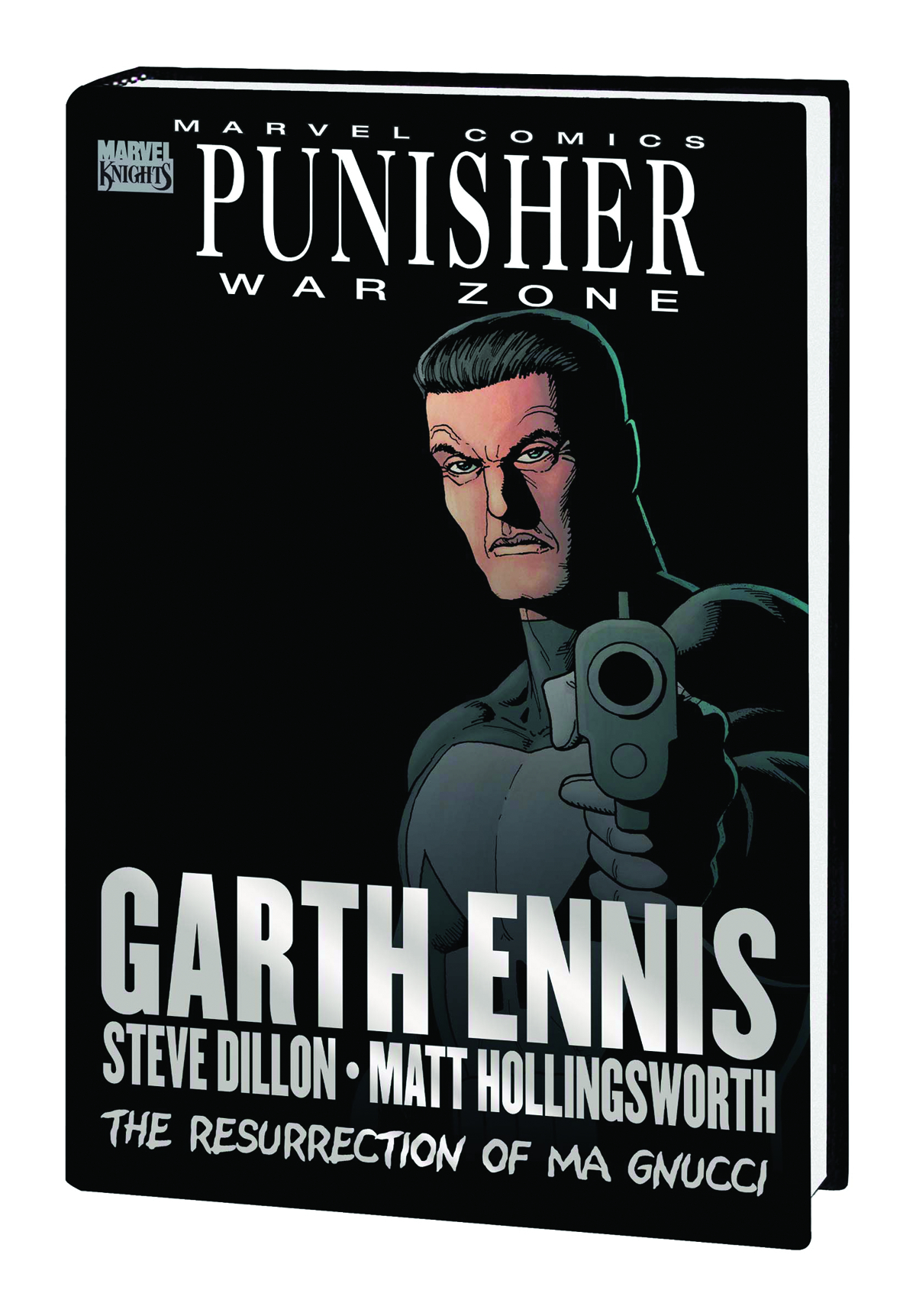 The latest offering from the red-hot Marvel Knights line reunites the seminal creative team of Garth Ennis and Steve Dillon for a sequel to their legendary story arc, "Welcome Back, Frank." It all starts when two mobsters take a trip to the zoo and piss off the wrong monkey. Limbs are lost (the kind you can't easily replace), vultures are fed (with said appendages), and then things get, like, really crazy. Like back-from-the-dead crazy. That's right -- she's back and she wants payback. Ma Gnucci. Eighty-five pounds of hairless, armless, legless evil. Collecting PUNISHER: WAR ZONE #1-6.