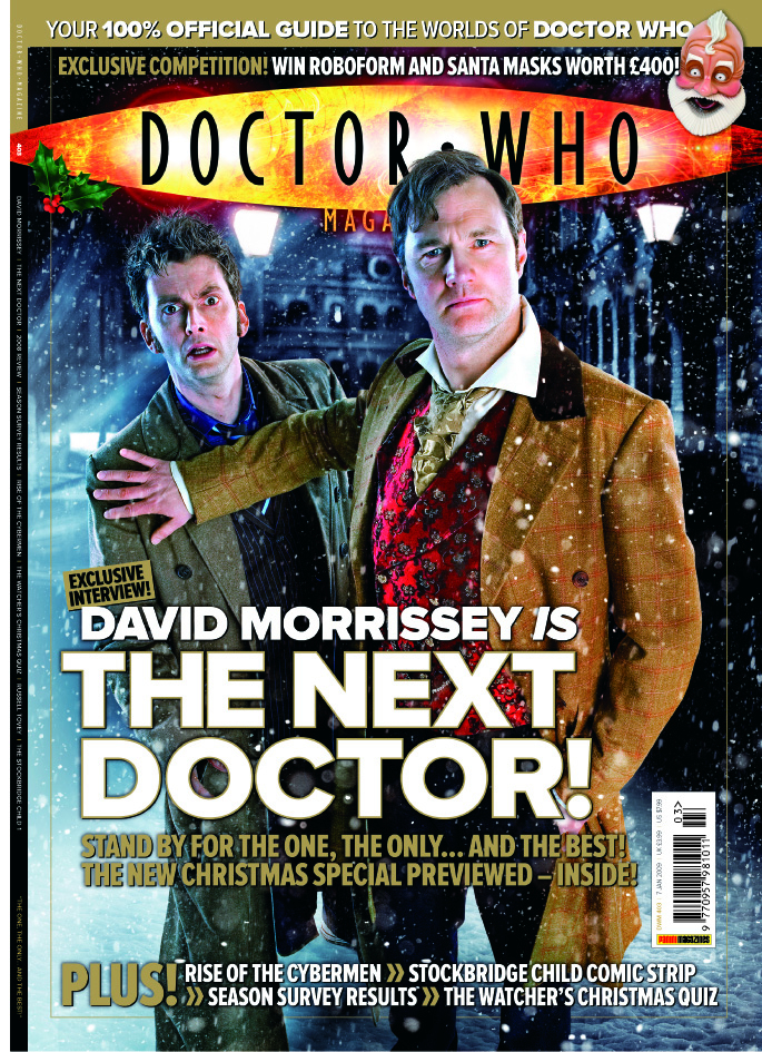 Doctor Who's 2009 Easter Special and goes behind-the-scenes; the Doctor encounters some old enemies in Part One of a brand new, full-color comic strip; writer Russell T. Davies takes us behind-the-scenes in "Production Notes;" The Time Team demand to be entertained as they watch 1988's "The Greatest Show in The Galaxy;" The Fact of Fiction scrutinizes another adventure; all the latest books, audios and DVDs are previewed and reviewed; plus exclusive interviews and never-before-seen photos, in-depth features, all the very latest news and much, much more!