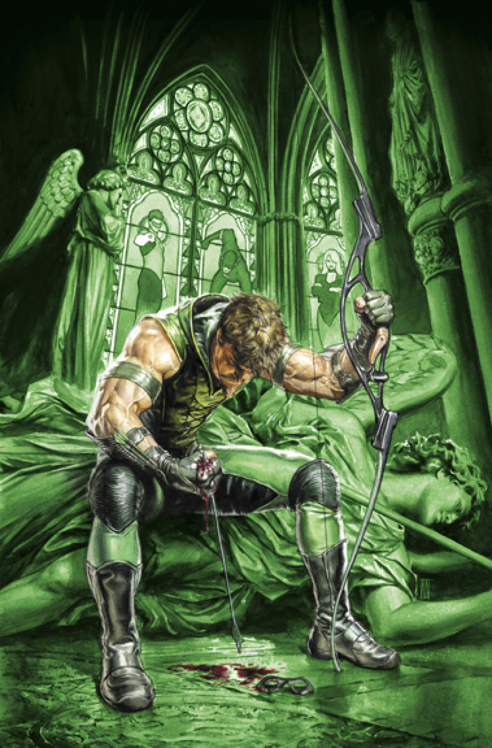 "The Fall of Green Arrow" begins here! Spinning out of the shocking events of JUSTICE LEAGUE: CRY FOR JUSTICE and JUSTICE LEAGUE: THE RISE AND FALL SPECIAL #1 comes the destruction of Green Arrow. As Oliver Queen's inner turmoil and guilt overwhelms him, secrets are revealed that will tear him asunder. What will the Emerald Archer reveal to the world that will change his life and the lives of the people around him forever? And why are Hal Jordan (Green Lantern), Barry Allen (The Flash) and the rest of the Justice League hunting him?