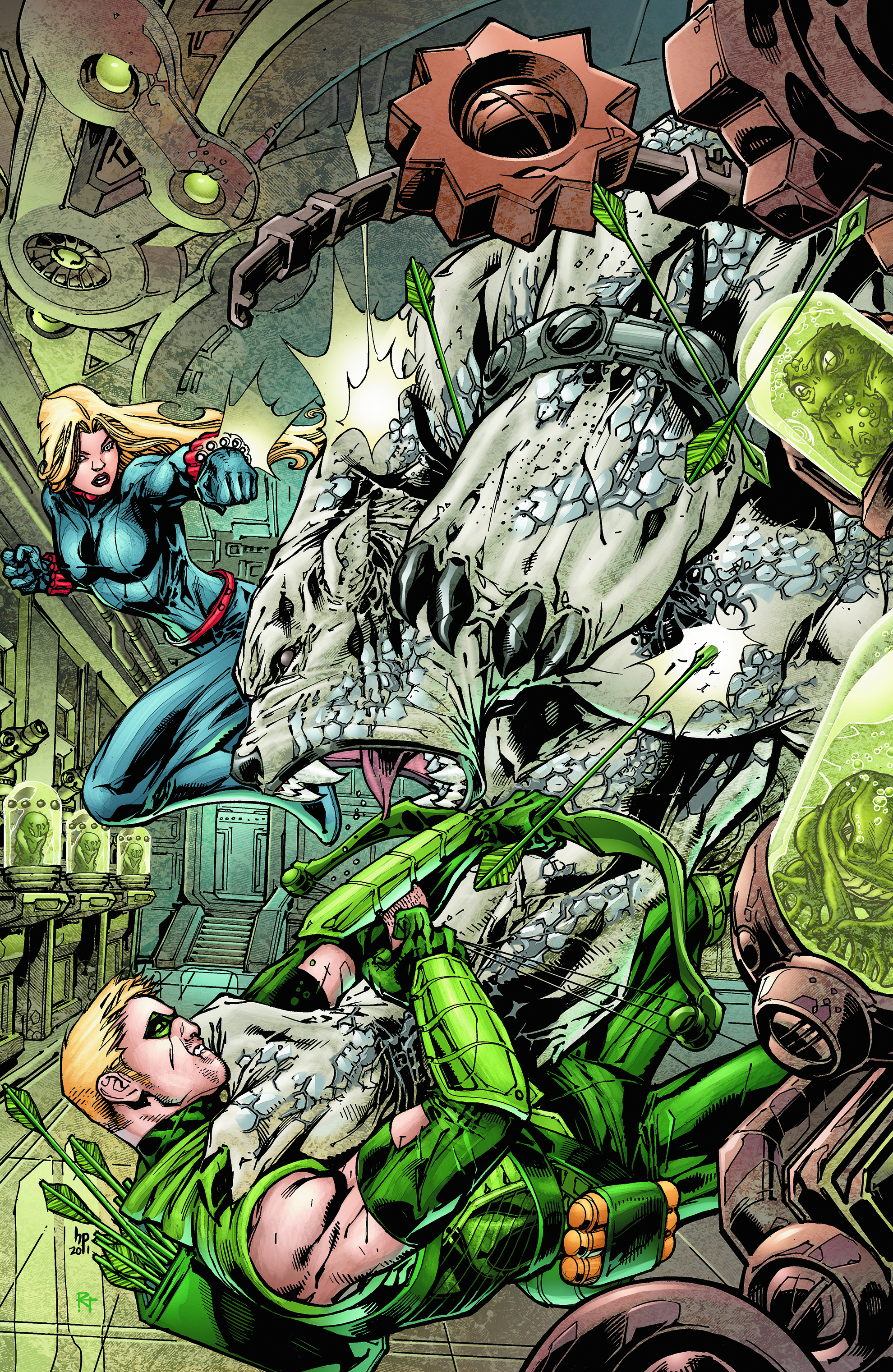 Part two of a three-part story introducing new creative team of Ann Nocenti and Harvey Tolibao! Green Arrow faces off against the enraged father of three beautiful sisters, which might not seem so unusual for Ollie until you add in the part about being trapped in a frozen tundra with a horde of bloodthirsty, mutating animals. Things aren't what they seem as Green Arrow must race to uncover the truth about this "family" before he becomes a monster snack - or a frozen corpse!