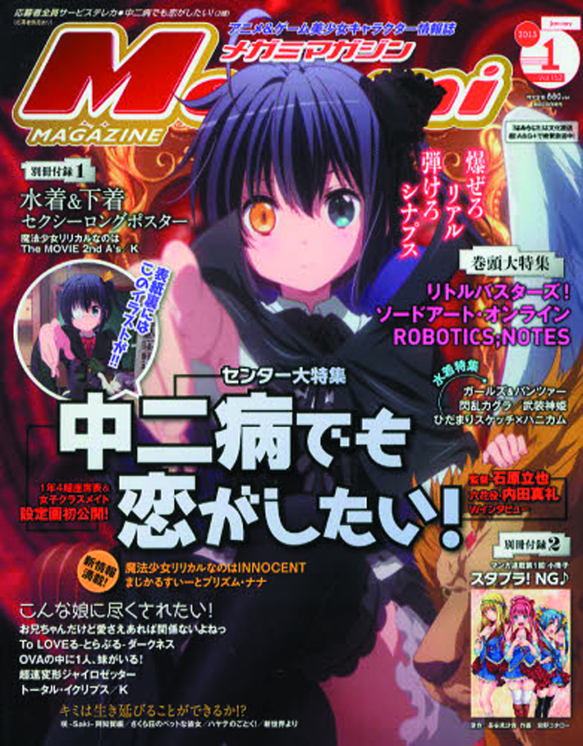 Megami is the best Japanese anime magazine for tons of free giveaways, as well as full-color artwork and posters! Includes telephone cards, punch-out "character stands," stickers, and much more!