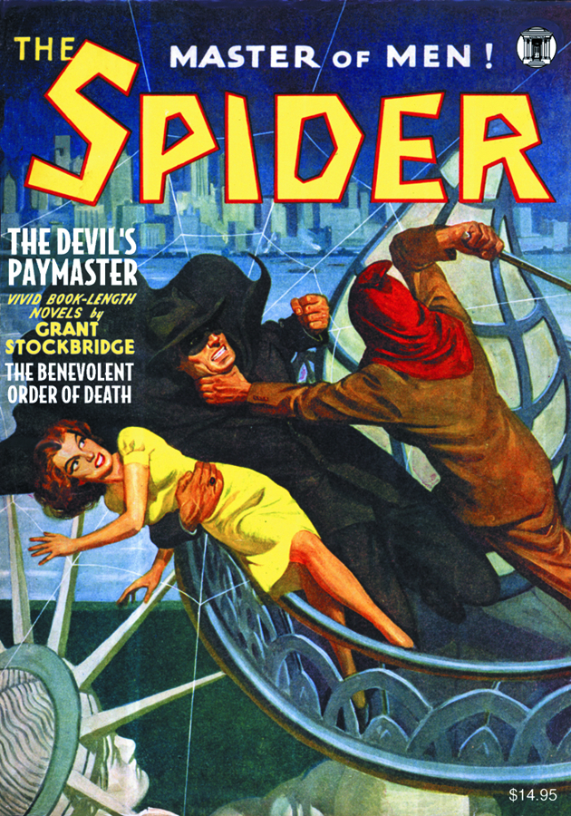 The Pulps' most murderous crimefighter continues his deadly war on criminal conspiracies in two violent thrillers by Norvell Page. First, "The Devil's Paymaster" deals torturous radioactive death, and only the Spider can restore honor to the Statue of Liberty! Then, Nita Van Sloan infiltrates the supposedly patriotic Benovolent Order of Americans, and a new Spider arises after Richard Wentworth is shot in the back!