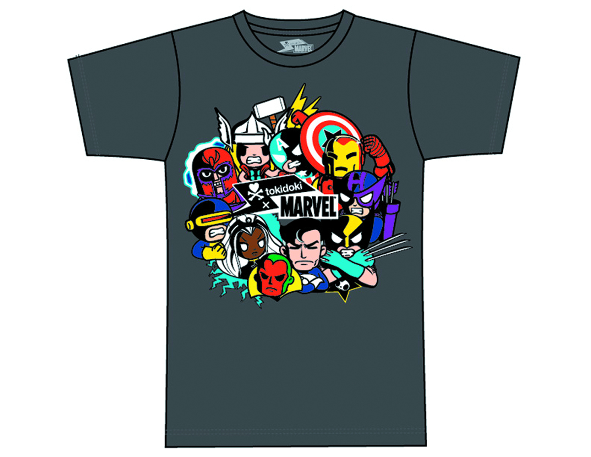 The heroes of the Marvel Universe are gathered together on this tokidoki shirt!