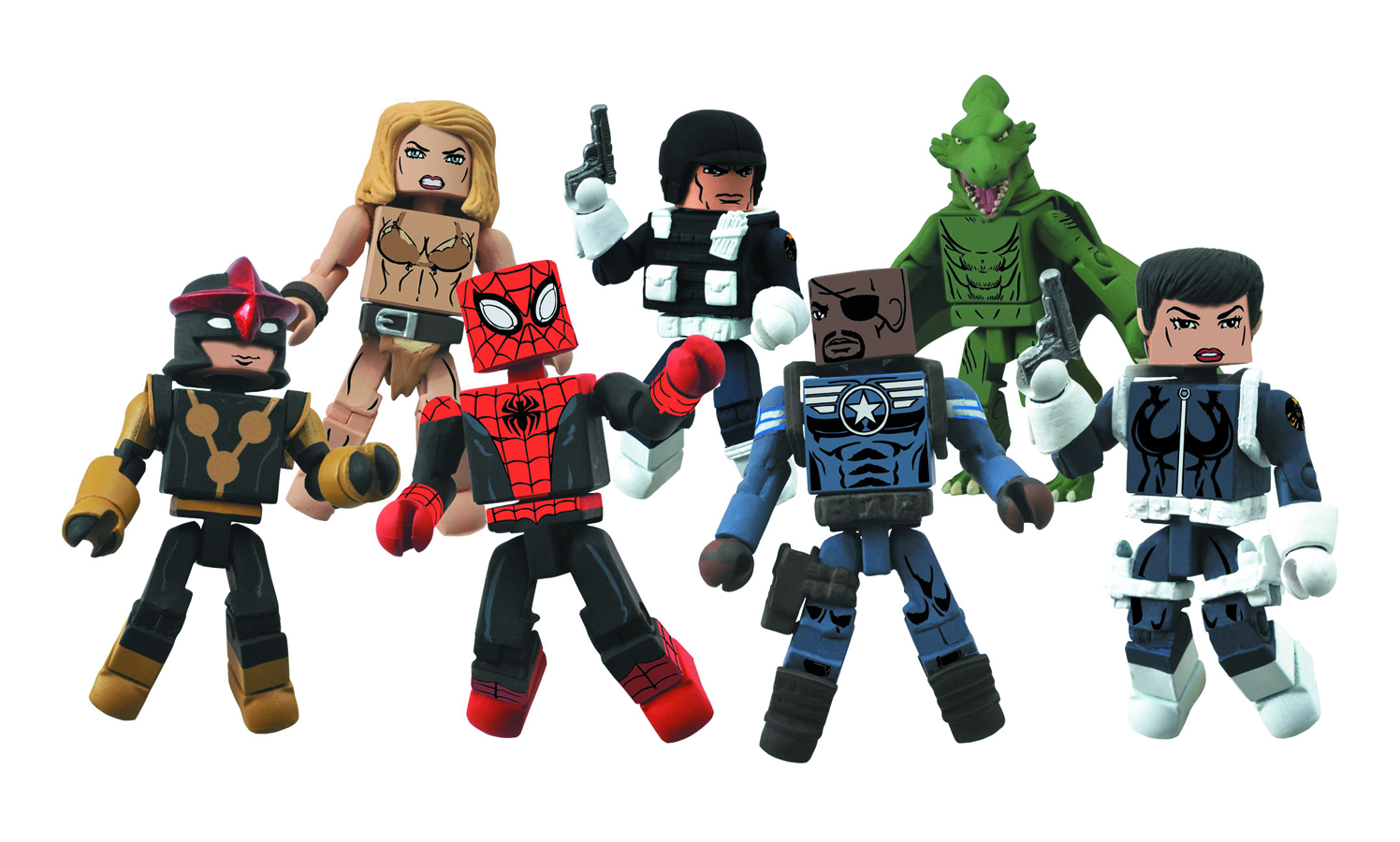 A Diamond Select Release! Designed and Sculpted by Art Asylum! The Marvel Universe will never be the same! With major team shake-ups across the Marvel Universe, DST is kicking off another ten years of Marvel Minimates with updated costumes and characters! Series 51 includes Spider-Man and Nova (Sam Alexander), Shanna the She-Devil and Sauron, Nick Fury Jr. and Heavy SHIELD Agent and a rare variant set, Maria Hill with Heavy SHIELD Agent. Each Minimate stands 2 inches tall with 14 points of articulation and a variety of removable and interchangeable parts and accessories.