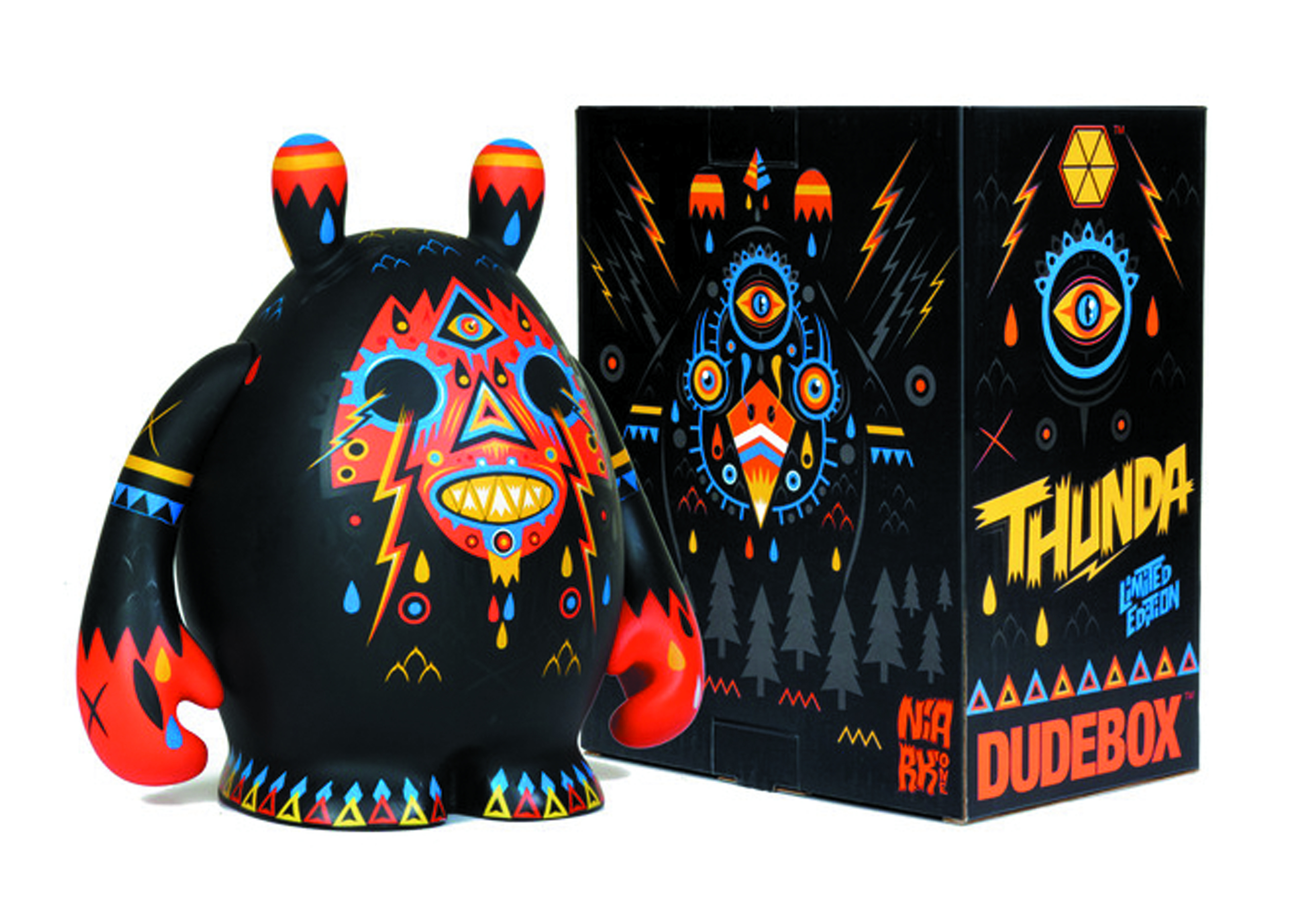 Niark1 is the French artist whose work never fails to amze. The tripped out creatures are the things you would find in a vividly beautiful dream. They have appeared in murals on walls, as paintings in galleries, on pages in books, and in ink as prints. This other world of beautiful creatures comes to life with the Thunda Vinyl Figure.