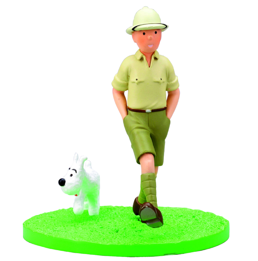 This high-quality plastic fi gurine features an image taken from page 27 of Tintin in the Congo. After vanquishing the evil witch-doctor and Al Capone's henchman Tintin and Snowy take a leisurely stroll. The box scene measures 4 inches tall and 4 inches wide.