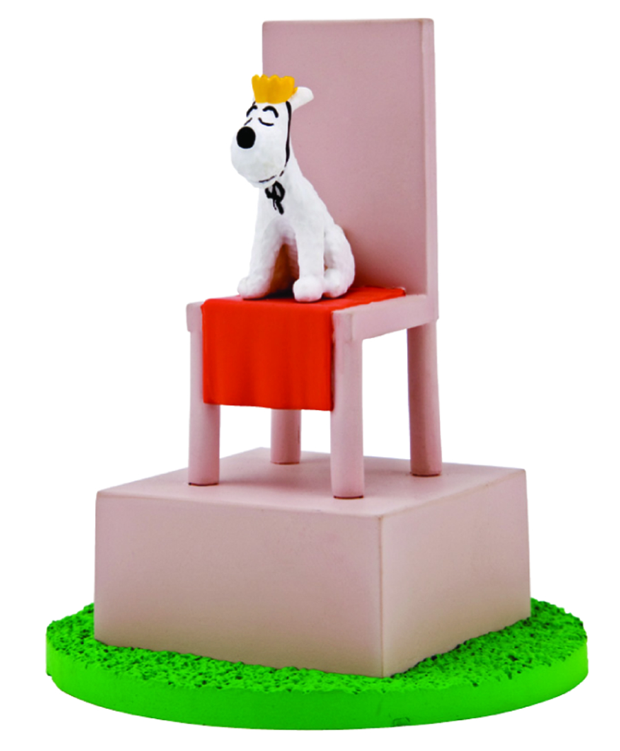 This fantastic, high-quality plastic fi gurine features an image taken from page 50 of Tintin in the Congo. Tintin arrives back at the village where he's surprised to fi nd Snowy waiting for him on a throne. The box scene measures 4 inches tall and 4 inches wide.