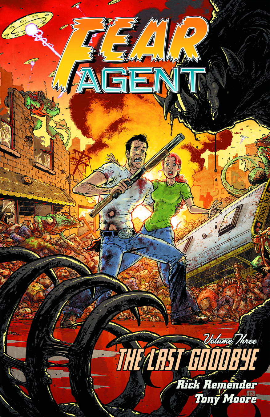 Fan-favorite creators Rick Remender and Tony Moore reunite to tell the pulse-pounding origin of the last Fear Agent! When Earth is attacked by the three feuding alien races, obliterating almost all life on the planet, weary trucker Heath Huston and his wife Charlotte face a living nightmare! Collects issues #12-#15