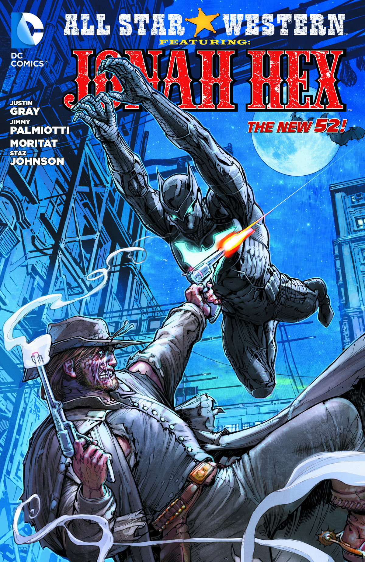 In these tales from issues #17-21, when a strange man clad in gold with force fields, lasers and the ability to fly drops into the past, Jonah Hex's mettle and grit will be tested as never before. And if the Old West was a challenge, how will Hex handle modern-day Gotham City?