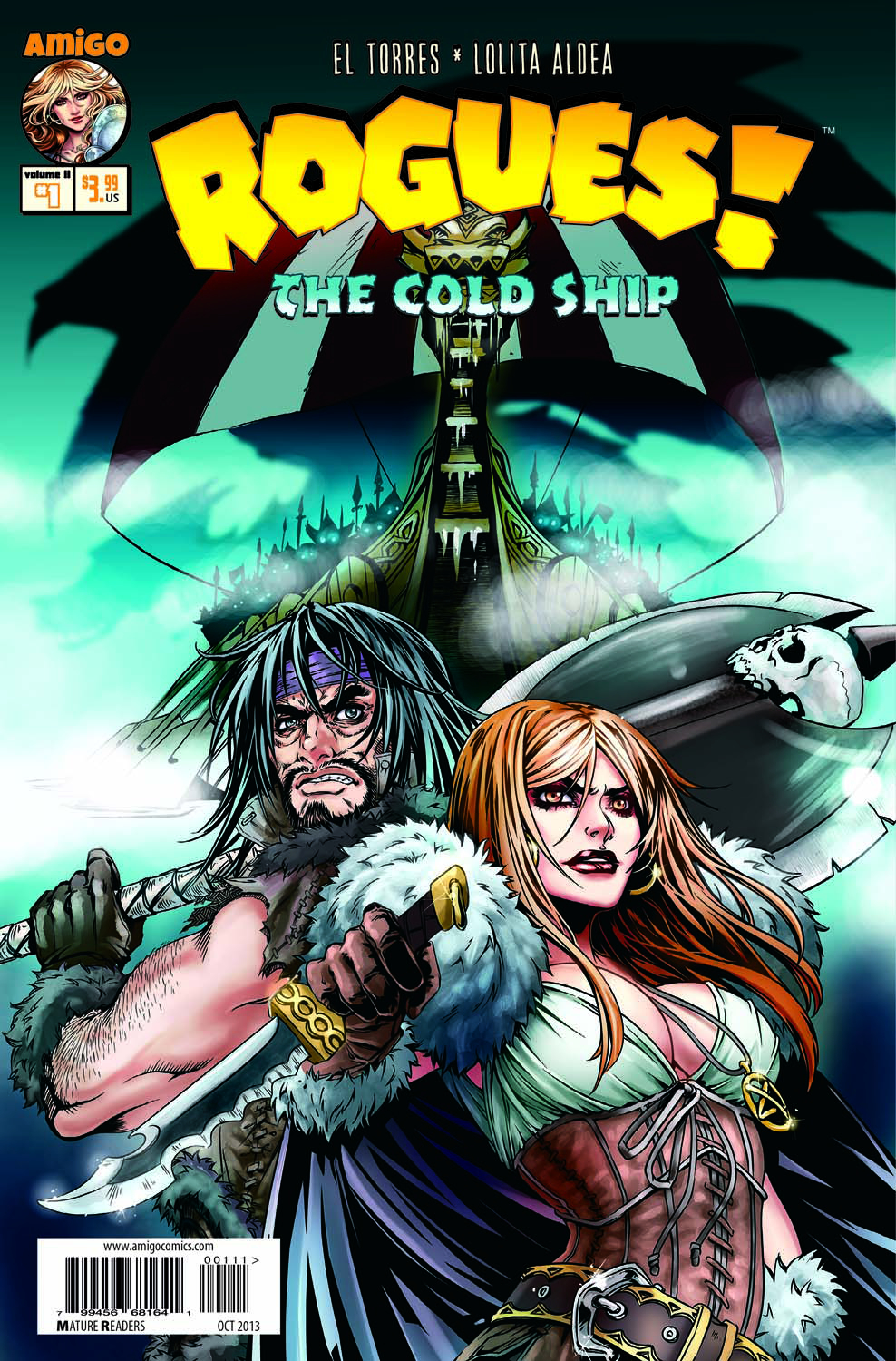 New story arc and new artist! The spectacular art of Lolita Aldea illustrates a new adventure of Bram and Weasel. Their friendship is strong, but it will be put to the test when one gloomy night, a dark ship appears in Geradas' harbor and the grim crew commands Bram, the northerner, to join them in their deadly quest!