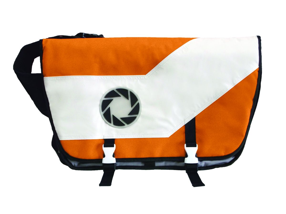 Show the world that you work at Aperture Labs with this messenger bag based on the hit video game