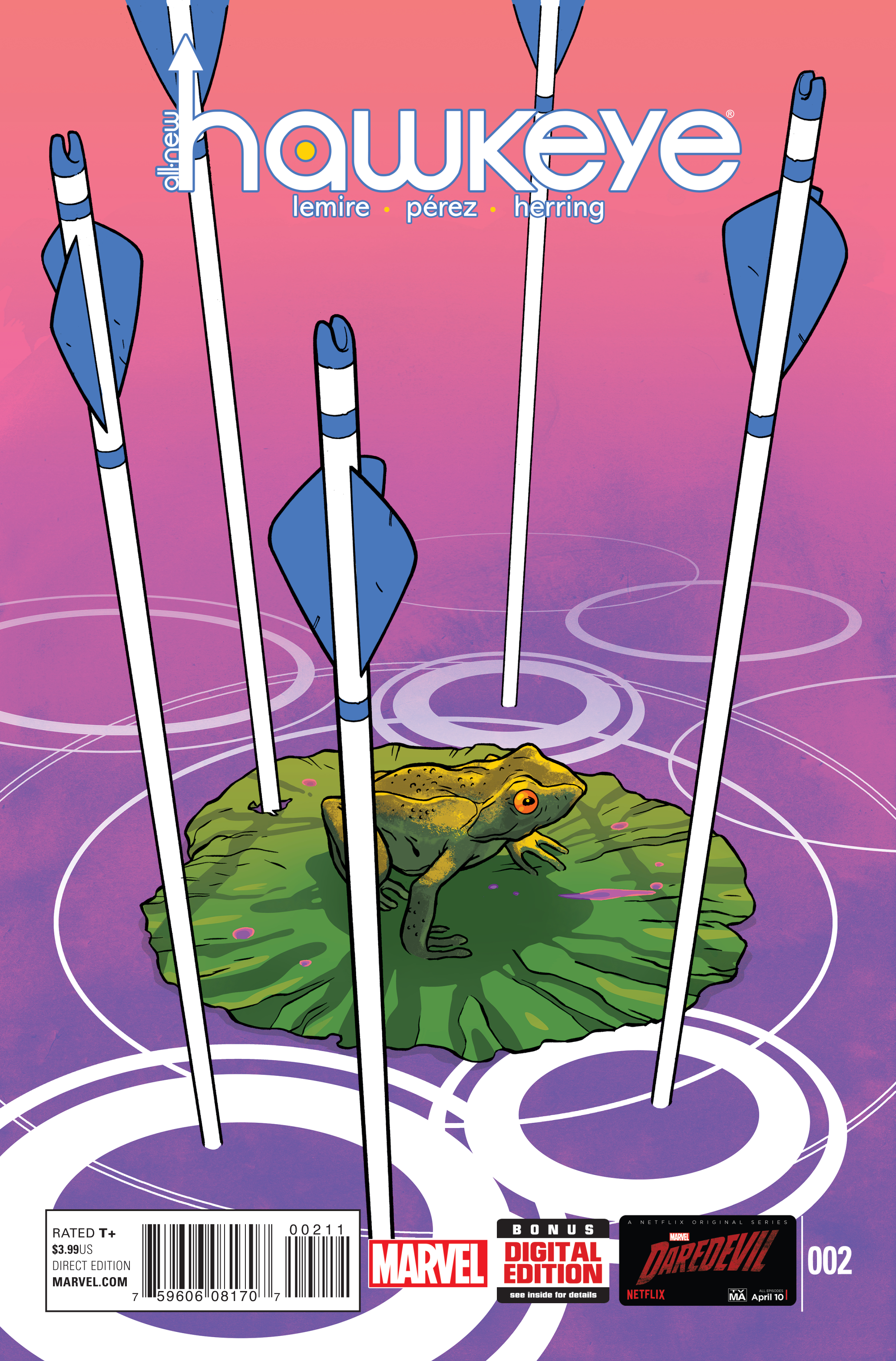 • Arrows over Bed-Stuy! Intrigue at the circus! The past and present merge as Hawkeyes Barton and Bishop race against time to save a group of innocent kids, with devastating powers.