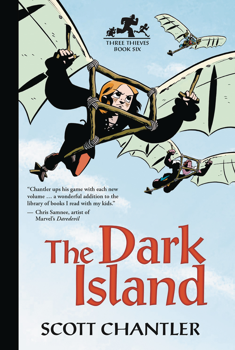 In this thrilling sixth installment of Scott Chantler's popular Three Thieves graphic novel series, the separate adventures of twins Dessa and Jared play out simultaneously and seem poised to intersect as the book ends. Dessa, along with Topper and Fisk, has managed a daring landing onto the flying island of Astaroth, where she hopes to find her long-lost brother. Instead, they discover a bizarre world where three children are being held by a mysterious and rarely seen man they call the Toymaker. Certain the Toymaker is Greyfalcon, Jared's kidnapper, Dessa is determined to track him down and confront him about her brother's location. Meanwhile, Captain Drake has unintentionally stumbled upon Jared himself and decides to hold the boy as bait to lure Dessa to him. But as he learns from Jared the particulars about the boy's abduction nine years ago, Drake is troubled. Why would such powerful people want to abduct a small peasant boy? The answer to that question is about to shock Drake -- and Jared! Readers of this award-winning fantasy-adventure series will be excited to find some of the pieces of the puzzle beginning to fall into place here. These fast-paced books, with loads of brilliantly depicted action scenes and just enough humor, are hugely appealing to both boys and girls. However, even as readers are getting pulled along by the high drama and exciting visuals, the complex storylines and intersecting character relationships will engage their critical thinking skills. As always, the cliffhanger ending will leave readers hungry for more. "