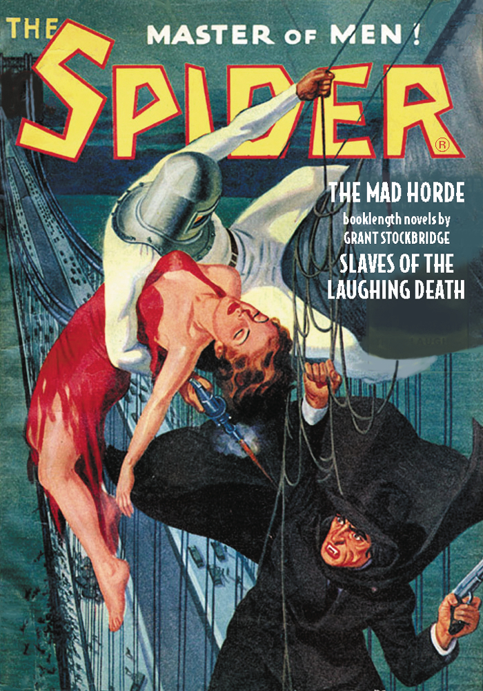The pulp era's most bloodthirsty avenger continues his deadly war against crime in two violent pulp novels by Norvell Page. First, "The Mad Horde" of rabid creatures is unleashed upon mill towns to undermine America's vital steel industry. Then, in "Slaves of the Laughing Death," the fiend of 1000 faces known only as Munro returns for a deadly rematch with the Spider, armed with a deadly weapon that causes victims to laugh until they die!