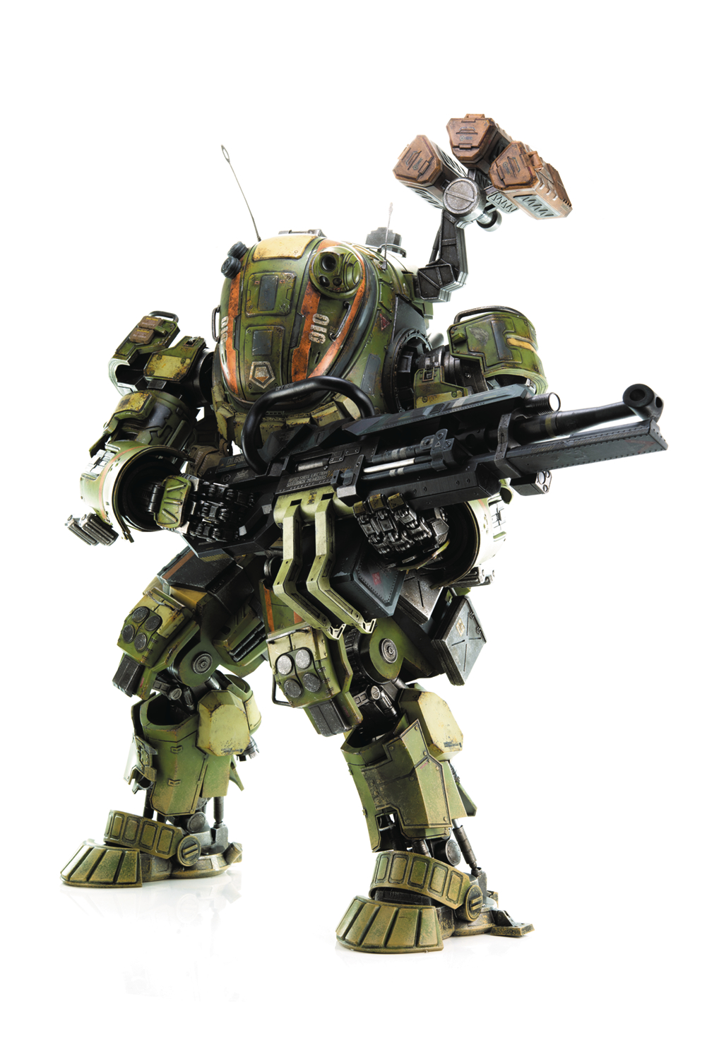 Ogre stands approximately 20" tall with incredible detail and more than 100 points of articulation, including real pistons that control the movement of the waist & feet and articulated fingers. The figure includes a 40MM Cannon (with detachable ammo drum), movable armor plates on both torso & legs and an articulated left side tri-missile launcher (the launcher hatch can be opened and missiles are detachable). The figure also has a fully openable hatch with cockpit for a fully posable 6" M-COR Battle Rifle Pilot figure detailed armor parts, R97 and weathered fabric clothing. Plus, the top, hips, afterburner (with interchangeable red & blue color) light up. (Requires 2 3A batteries, not included.)