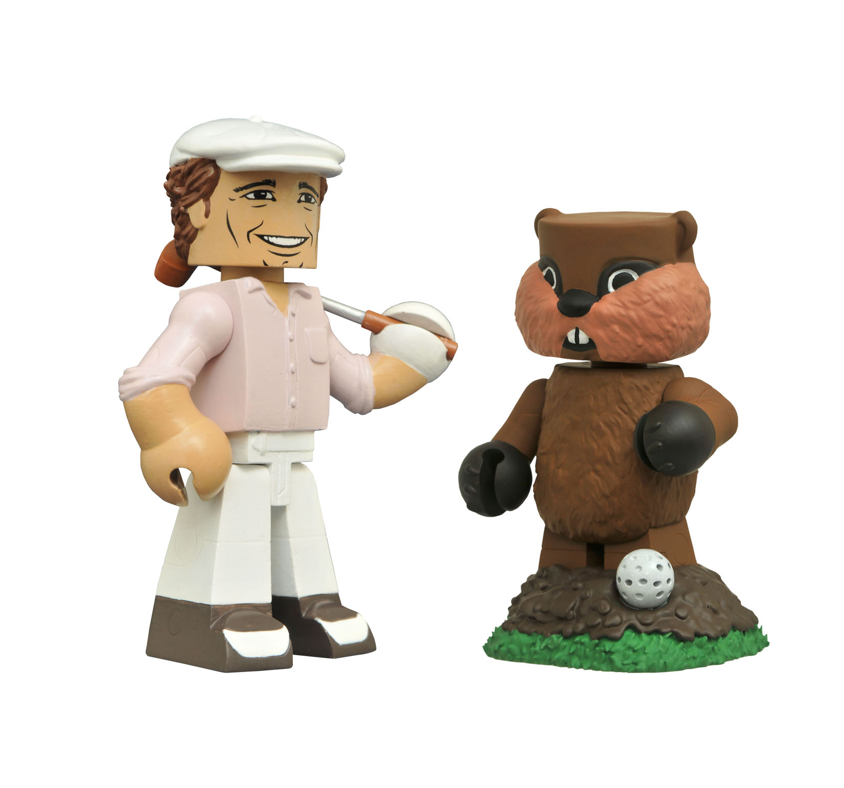 Caddyshack Vinimates, based on the classic golf comedy! These 4-inch vinyl figures of Ty Webb and the Gopher are sculpted in the Minimates block-figure style, wearing outfits and striking poses straight from the movie. Both feature articulated necks for further posing options. Each comes packaged in a full-color window box.