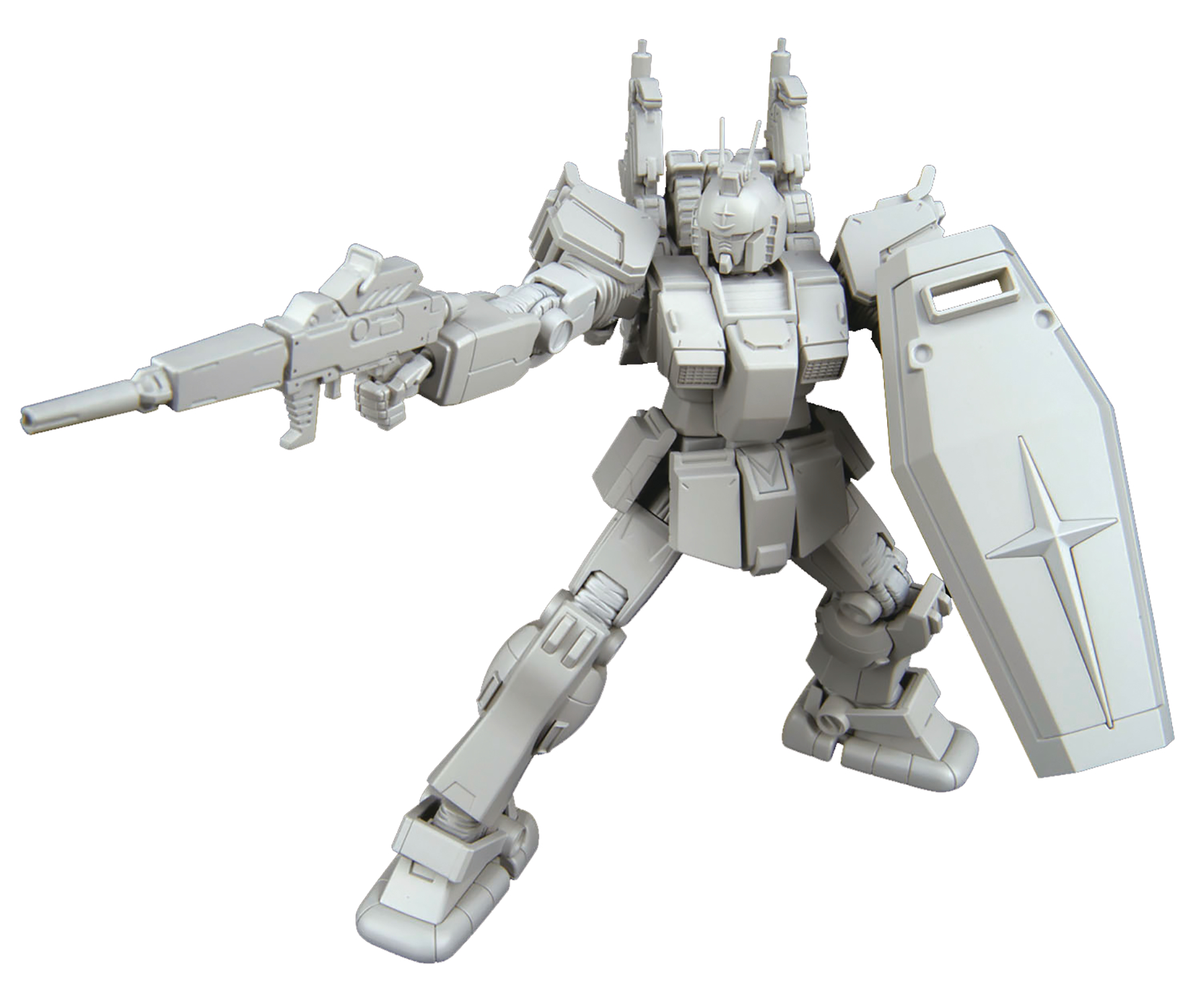 Gundam Thunderbolt! Utilizing portions of the GM as a base, this new unit includes beam rifle, beam javelin, beam saber, and shield. Includes a sticker sheet and instruction manual. Model kit stands approximately 5" tall when assembled.
