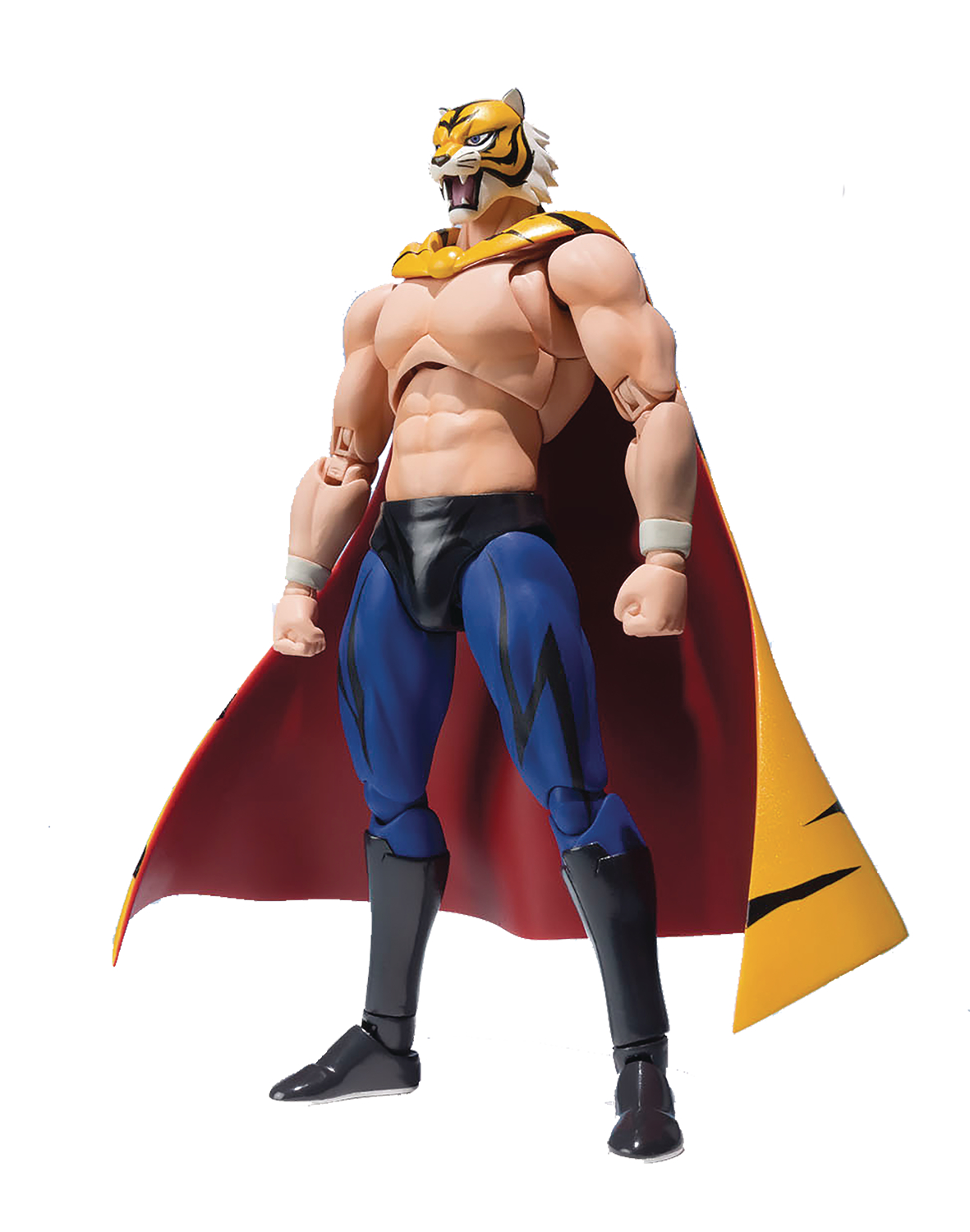 Tiger the Dark! The pair, sold separately, join S.H.Figurarts at the same time. Both utilize the Neo Fighting Body, designed from the ground up for portraying battling characters with realistic posability. Backdrops, kicks, piledrivers... You name it! The 5 7/8" tall Tiger Mask comes with an optional pair of hands.